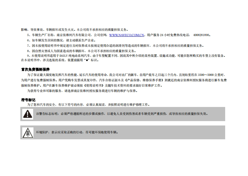 欧胜纯电动汽车使用说明书_V4.2-20231123348072@abc7天前发布关注私信10.10MB168页02412欧胜纯电动汽车使用说明书_V4.2-20231123此内容为付费资源,请付费后查看¥19¥23黄金会员免费钻石会员免费立即购买您当前未登录!建议登陆后购买,可保存购买订单付费资源 第1页 / 共168页 第2页 / 共168页 第3页 / 共168页 第4页 / 共168页 第5页 / 共168页 试读已结束,还剩163页,您可下载完整版后进行离线阅读 © 版权声明文章版权归作者所有,未经允许请勿转载。THE END说明书手册 文本预览 南京依维柯欧胜纯电动汽车使用说明书(V4.2)南京依维柯汽车有限公司2023年11月 查看更多 收起部分 喜欢就支持一下吧点赞12 分享QQ空间微博QQ好友海报分享复制链接收藏