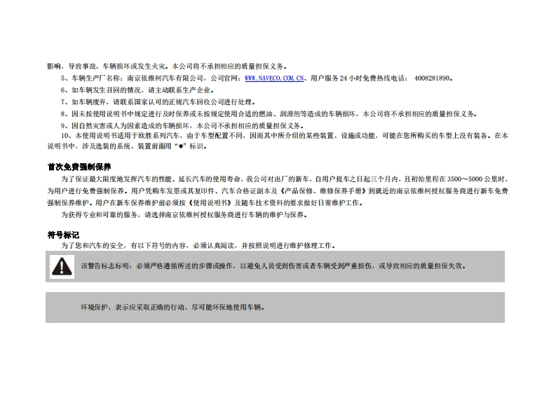 欧胜使用说明书_V2.4_20231121348072@abc7天前发布关注私信9.60MB245页0507欧胜使用说明书_V2.4_20231121此内容为付费资源,请付费后查看¥19¥23黄金会员免费钻石会员免费立即购买您当前未登录!建议登陆后购买,可保存购买订单付费资源 第1页 / 共245页 第2页 / 共245页 第3页 / 共245页 第4页 / 共245页 第5页 / 共245页 试读已结束,还剩240页,您可下载完整版后进行离线阅读 © 版权声明文章版权归作者所有,未经允许请勿转载。THE END说明书手册 文本预览 南京依维柯欧胜汽车使用说明书(V2.4)南京依维柯汽车有限公司2023年11月 查看更多 收起部分 喜欢就支持一下吧点赞7 分享QQ空间微博QQ好友海报分享复制链接收藏