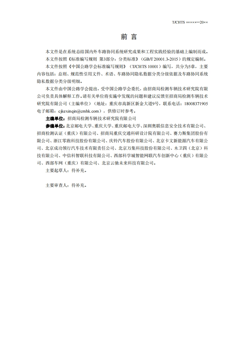 1、()车路协同系统隐私数据分类分级标准(2)348072@abc5天前发布关注私信0.55MB18页050151、()车路协同系统隐私数据分类分级标准(2)此内容为付费资源,请付费后查看¥17¥19黄金会员免费钻石会员免费立即购买您当前未登录!建议登陆后购买,可保存购买订单付费资源 第1页 / 共18页 第2页 / 共18页 第3页 / 共18页 第4页 / 共18页 第5页 / 共18页 试读已结束,还剩13页,您可下载完整版后进行离线阅读 © 版权声明文章版权归作者所有,未经允许请勿转载。THE END土木工程工学类建材家居机械电气设计标准规范理学类石油化工行业资料 文本预览 ICS号CCS号团体标准T/CHTS XXXXX-XXXX代替的团体标准编号车路协同系统隐私数据分类分级标准Drafting Rules for Standards of Privacy data in CooperativeVehicle Infrastructure SystemXXXx-XX-Xx发布XXXX-XX-Xx实施中国公路学会发布 查看更多 收起部分 喜欢就支持一下吧点赞15 分享QQ空间微博QQ好友海报分享复制链接收藏