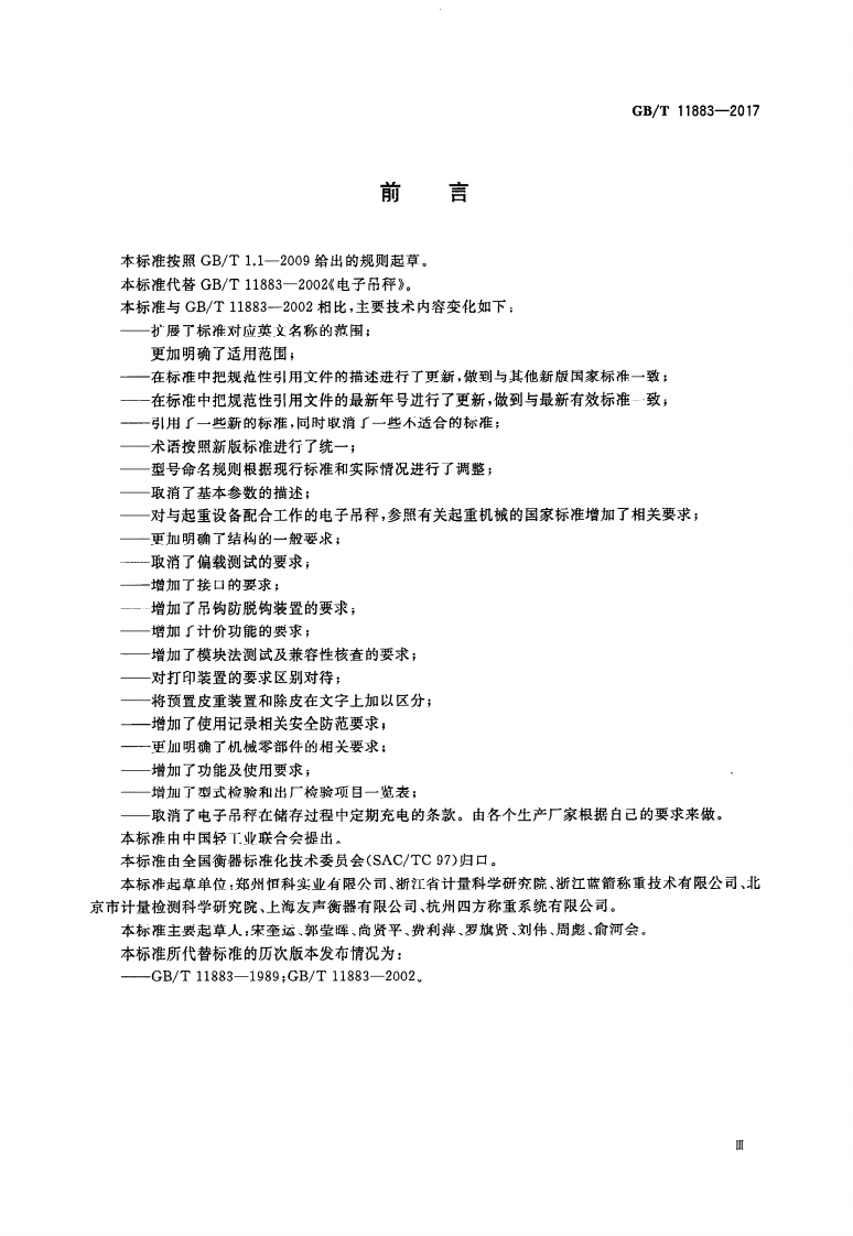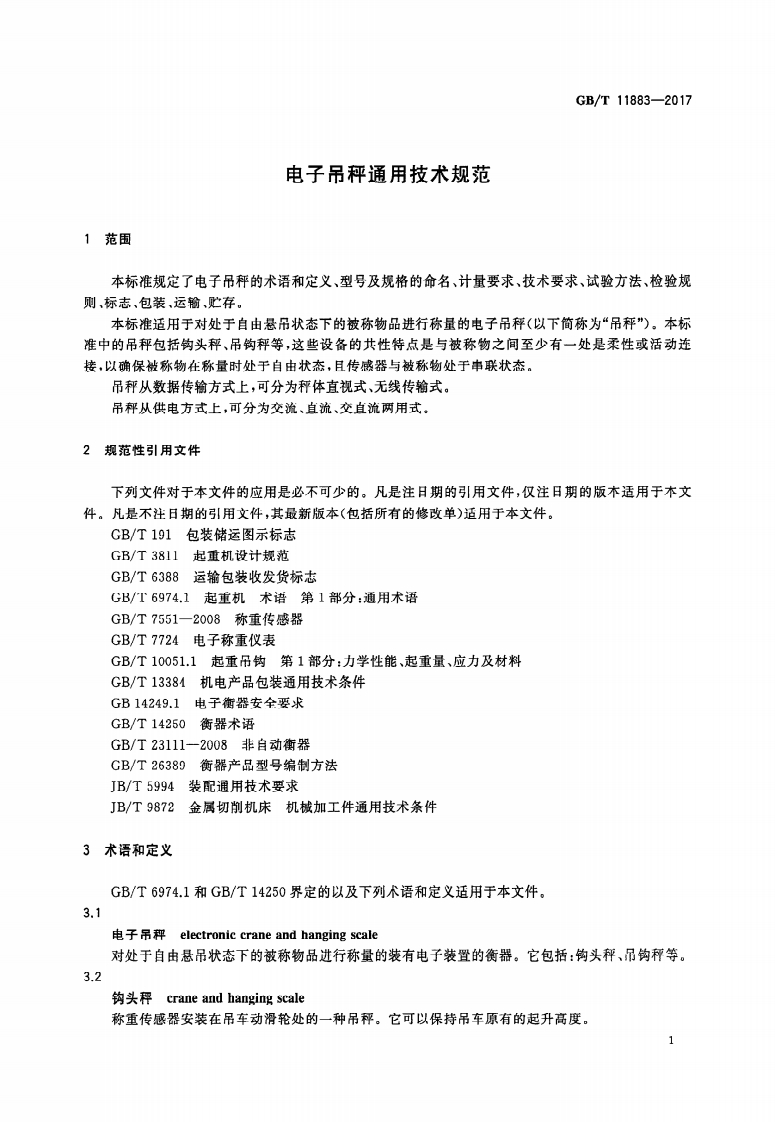 GBT11883-2017电子吊秤通用技术规范348072@abc1个月前发布关注私信1.69MB22页026GBT11883-2017电子吊秤通用技术规范此内容为付费资源,请付费后查看¥17¥19黄金会员免费钻石会员免费立即购买您当前未登录!建议登陆后购买,可保存购买订单付费资源 第1页 / 共22页 第2页 / 共22页 第3页 / 共22页 第4页 / 共22页 第5页 / 共22页 试读已结束,还剩17页,您可下载完整版后进行离线阅读 THE END标准规范 文本预览 1CS17.100N13GB中华人民共和国国家标准GB/T11883-2017代替GB/T11883一2002电子吊秤通用技术规范General technical spccificationfor electronic crane and hanging scale2017-10-14发布2018-05-01实施中华人民共和国国家质量监督检验检疫总局中国国家标准化管理委员会发布 查看更多 收起部分 喜欢就支持一下吧收藏
