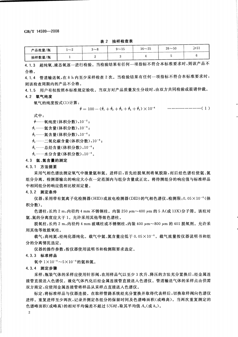 ICS71.100.20G86B中华人民共和国国家标准GB/T14599-2008代替GB/T14599-1993,GB/T14605-1993纯氧、高纯氧和超纯氧Pure oxygen and high purity oxygen and ultra pure oxygen2008-05-15发布2008-11-01实施中华人民共和国国家质量监督检验检疫总局中国国家标准化管理委员会发布