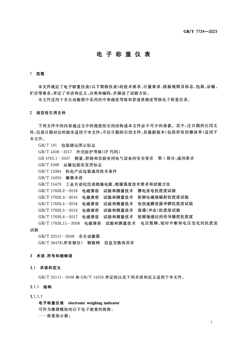 GBT7724-2023电子称重仪表348072@abc1个月前发布关注私信2.40MB29页045GBT7724-2023电子称重仪表此内容为付费资源,请付费后查看¥17¥19黄金会员免费钻石会员免费立即购买您当前未登录!建议登陆后购买,可保存购买订单付费资源 第1页 / 共29页 第2页 / 共29页 第3页 / 共29页 第4页 / 共29页 第5页 / 共29页 试读已结束,还剩24页,您可下载完整版后进行离线阅读 THE END标准规范 文本预览 ICs17.100CCS N 13中华人民共和国国家标准GB/T7724-2023代替GB/T7724一2008电子称重仪表Electronic weighing indicator2023-11-27发布2024-06-01实施国家市场监督管理总局国家标准化管理委员会发布 查看更多 收起部分 喜欢就支持一下吧收藏