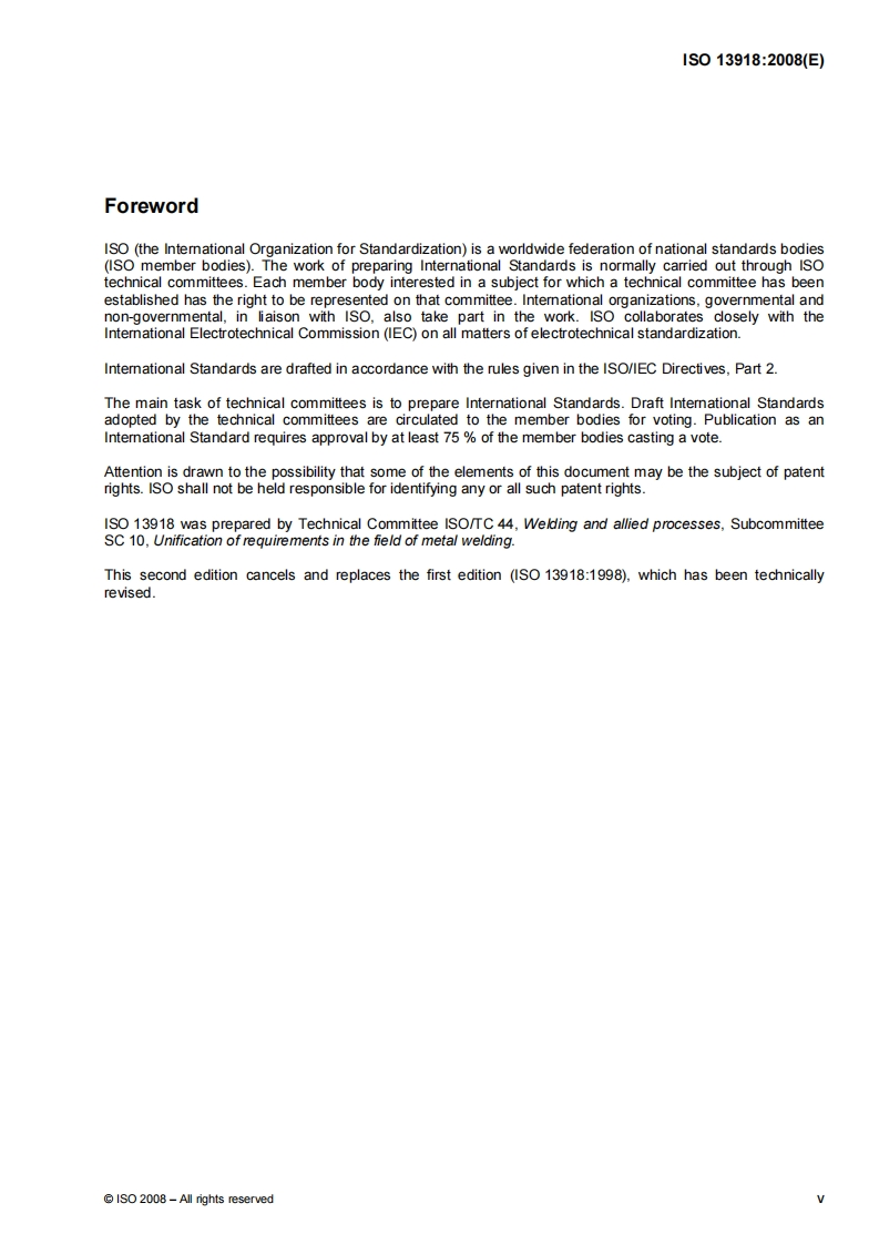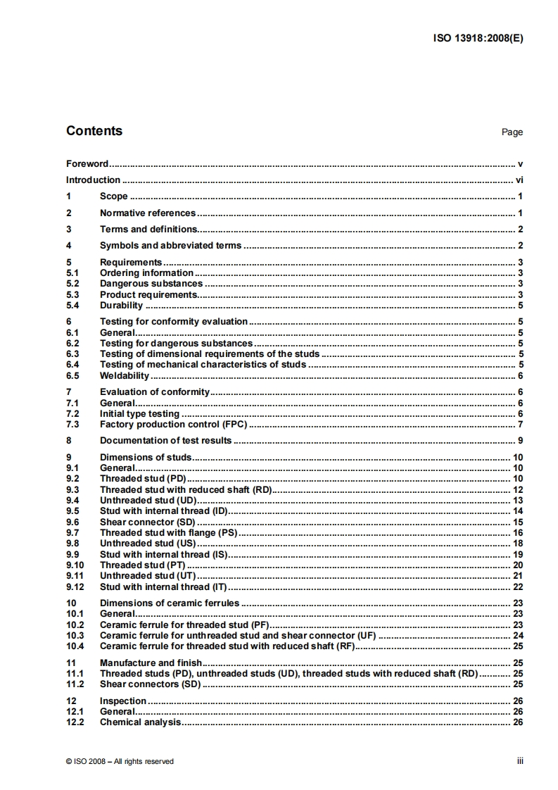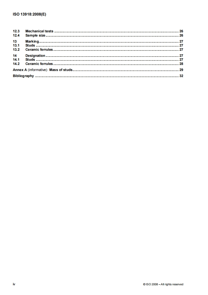 INTERNATIONALISOSTANDARD13918Second edition2008-02-15Welding-Studs and ceramic ferrules forarc stud weldingSoudage-Goujons et bagues ceramiques pour le soudage a I'arc desgoujonsReference number1S013918:2008(E©1S02008