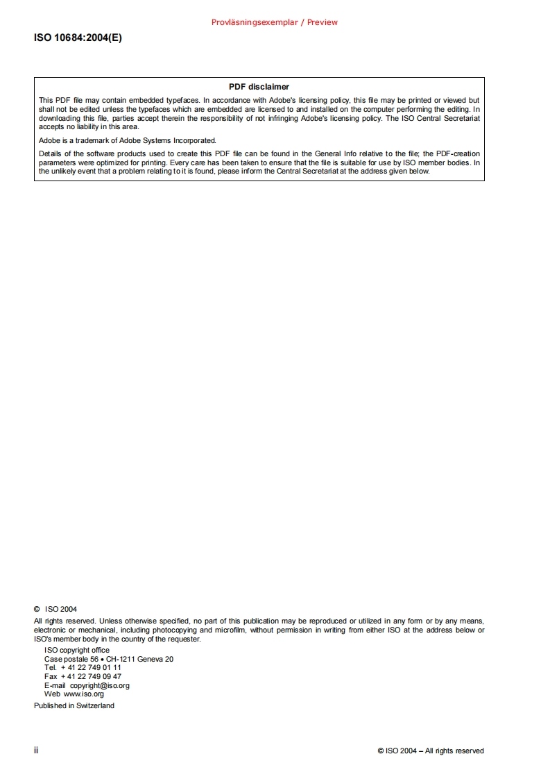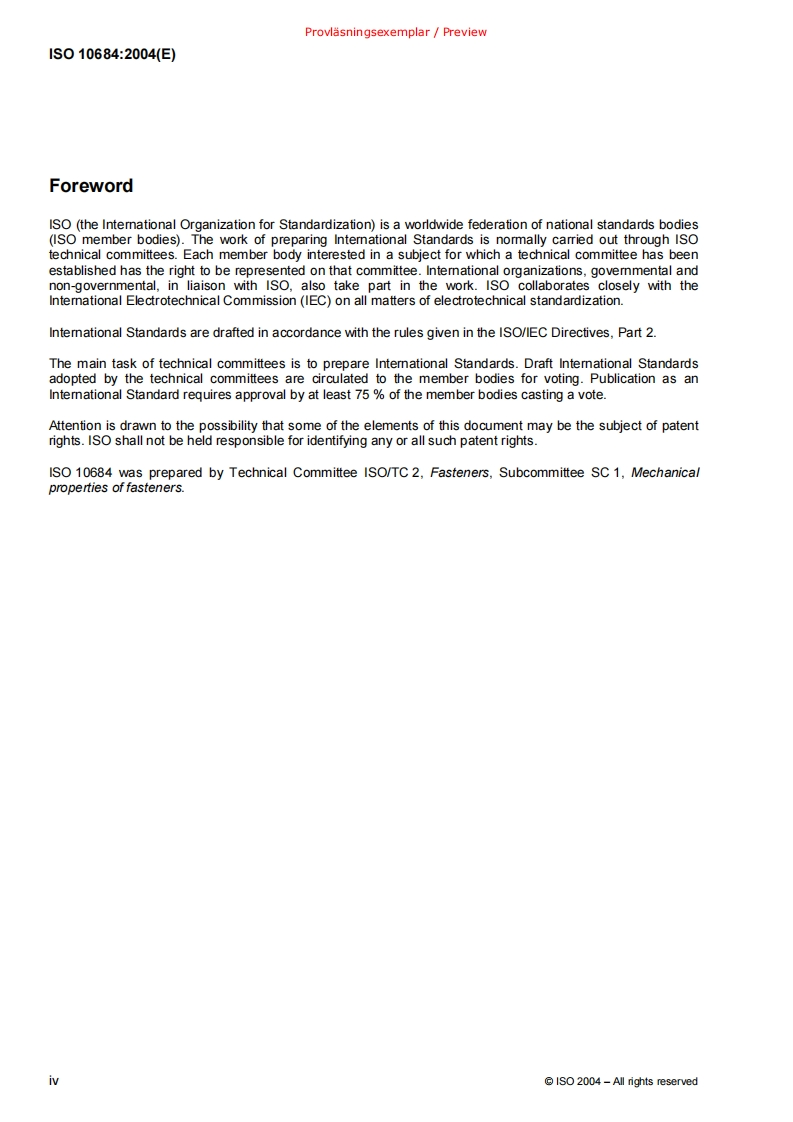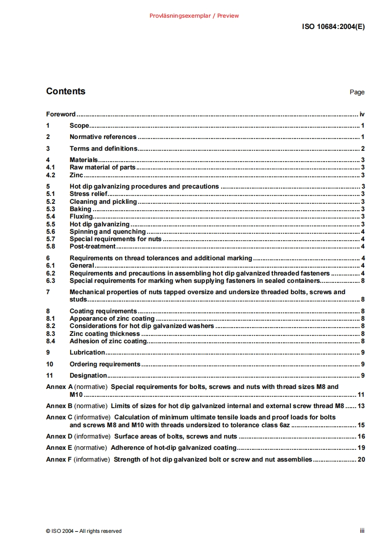 Provlasningsexemplar /PreviewINTERNATIONALISOSTANDARD10684First edition2004-07-15Fasteners-Hot dip galvanized coatingsElements de fixation-Revetements de galvanisation a chaudReference number1S010684:2004©1S02004