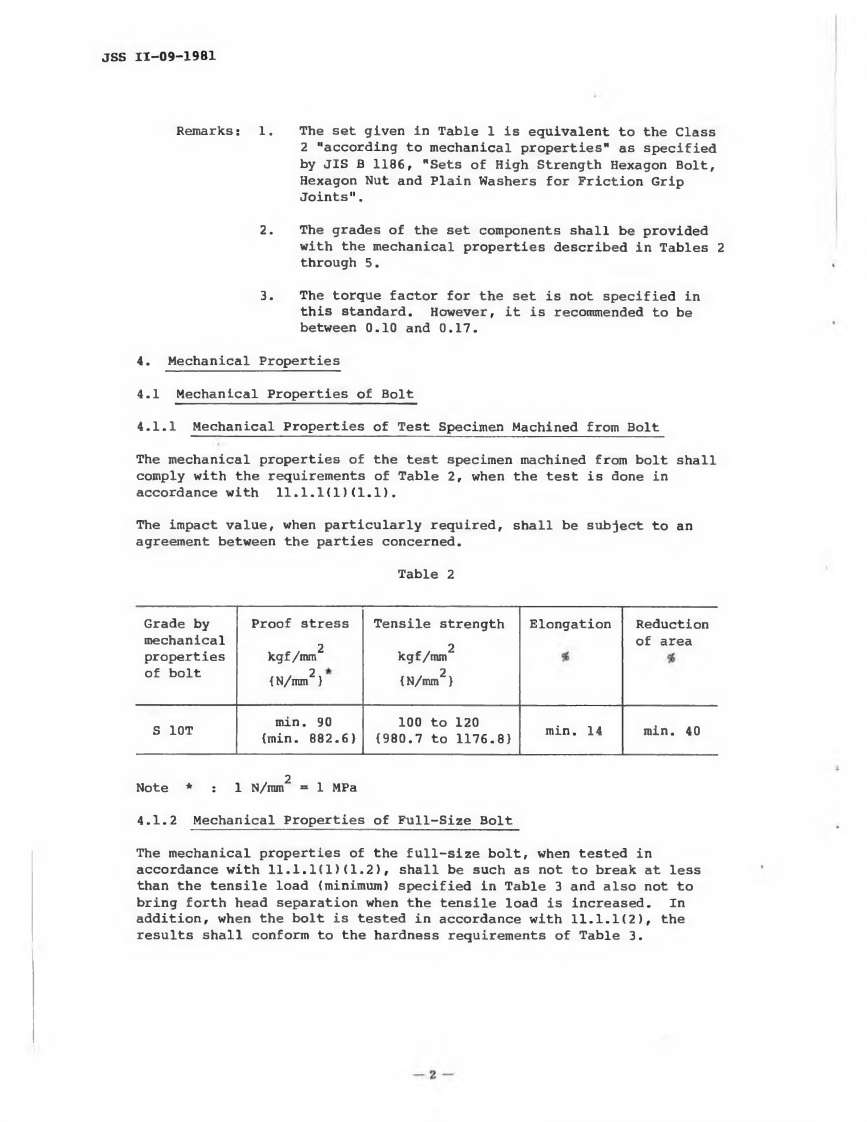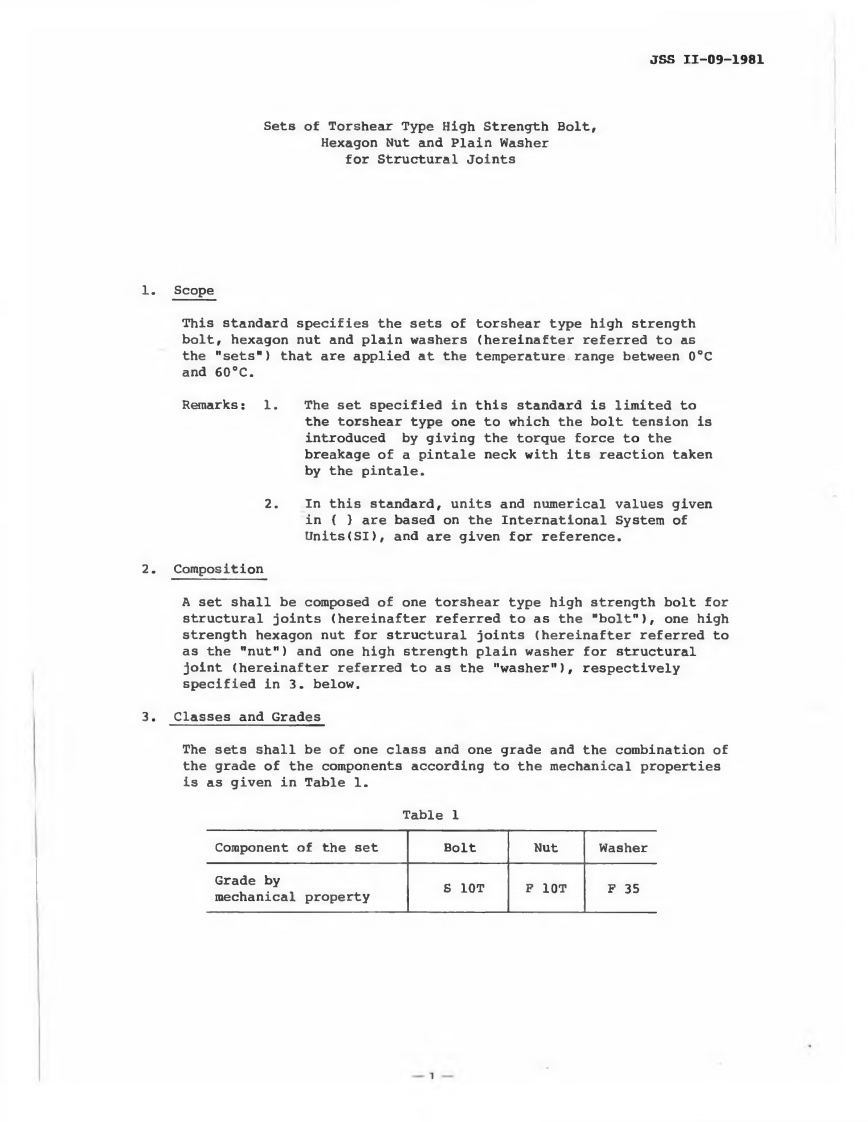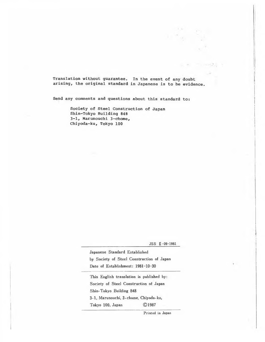 Society of Steel Construction of JapanStandardSets of Torshear Type High StrengthBolt,Hexagon Nut and PlainWasher for Structural JointsJSSⅡ-09-1981Translated and PublishedbySociety of Steel Construction of Japan