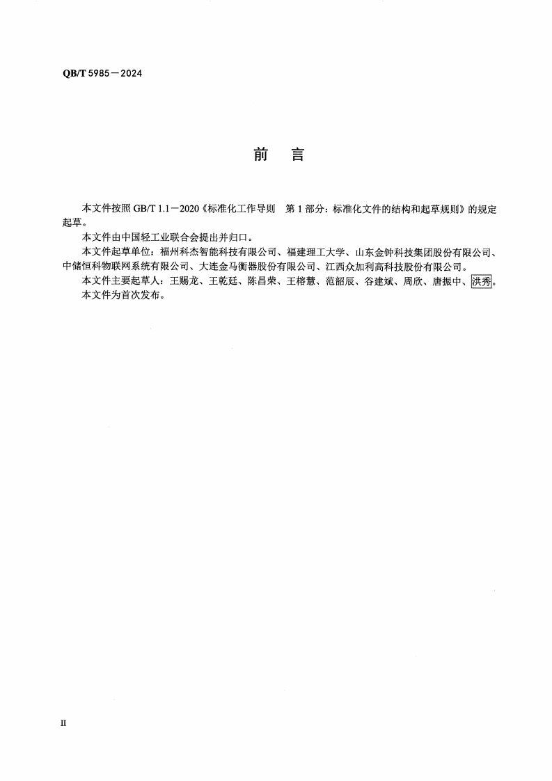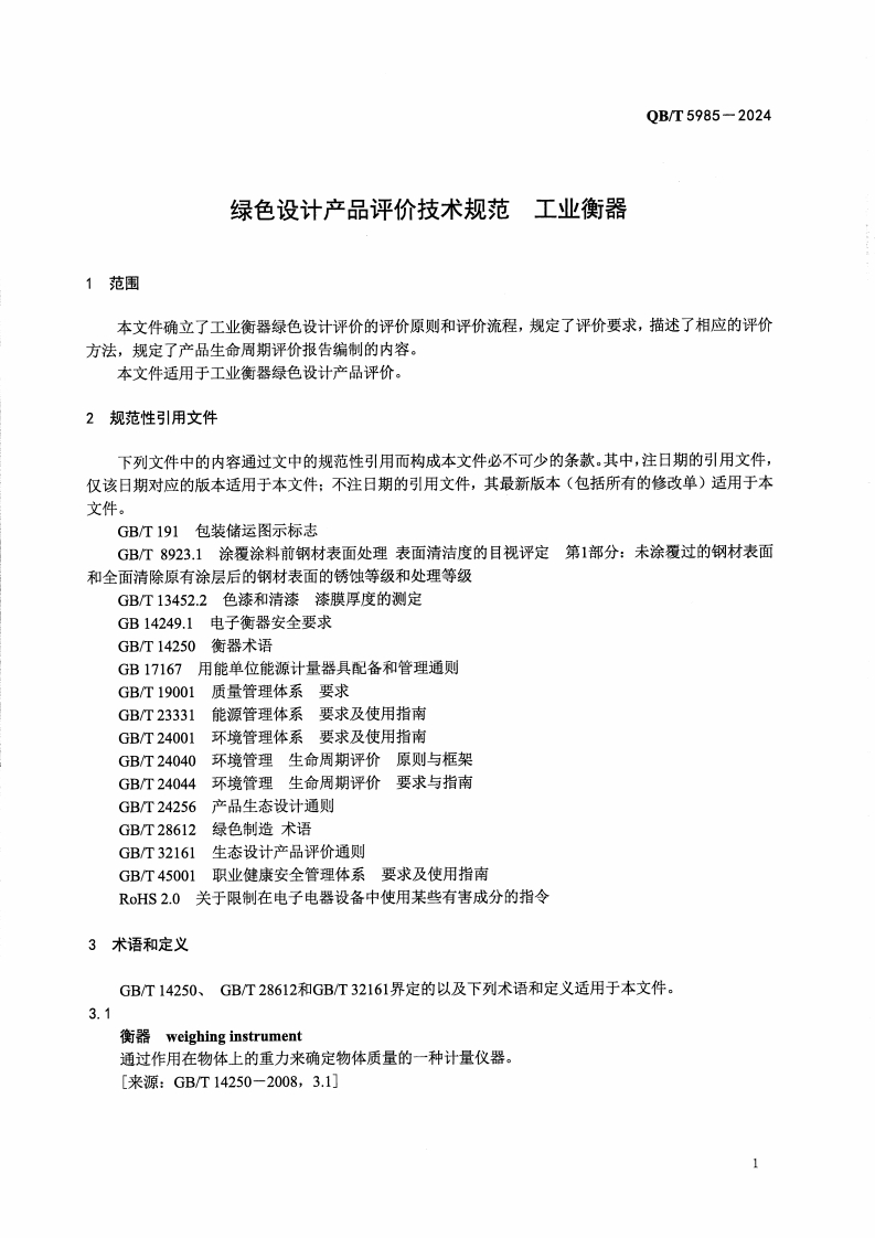 QBT5985-2024绿色设计产品评价技术规范-工业衡器348072@abc1个月前发布关注私信1.27MB18页030QBT5985-2024绿色设计产品评价技术规范-工业衡器此内容为付费资源,请付费后查看¥17¥19黄金会员免费钻石会员免费立即购买您当前未登录!建议登陆后购买,可保存购买订单付费资源 第1页 / 共18页 第2页 / 共18页 第3页 / 共18页 第4页 / 共18页 第5页 / 共18页 试读已结束,还剩13页,您可下载完整版后进行离线阅读 THE END标准规范 文本预览 ICS17.100CCS N1348中华人民共和国轻工行业标准QB/T5985-2024绿色设计产品评价技术规范」工业衡器Technical specification for green-design product assessment-Industrial weighing instrument2024-03-29发布2024-10-01实施中华人民共和国工业和信息化部发布 查看更多 收起部分 喜欢就支持一下吧收藏