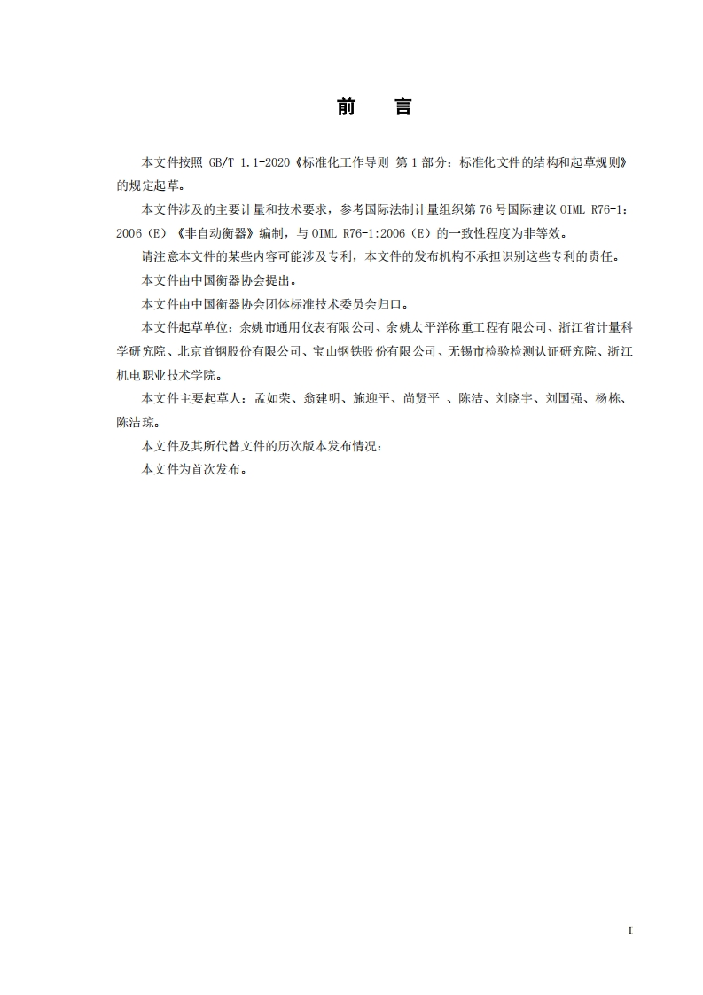 ICS17.100N13中国衡器协会团体标准T/CWIAS0003-2023耐高温电子钢包秤High temperature resistant electronic ladle scale0IML R76-1:2006 (E),Non-automatic wei ghing instrumentsPart 1:Metrological and technical requirements-Test,NEQ2023-10-26发布2024-03-01实施中国衡器协会发布