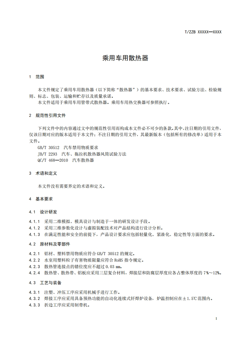 《乘用车用散热器》348072@abc1个月前发布关注私信0.28MB9页027《乘用车用散热器》此内容为付费资源,请付费后查看¥17¥19黄金会员免费钻石会员免费立即购买您当前未登录!建议登陆后购买,可保存购买订单付费资源 第1页 / 共9页 第2页 / 共9页 第3页 / 共9页 第4页 / 共9页 第5页 / 共9页 试读已结束,还剩4页,您可下载完整版后进行离线阅读 THE END标准规范 文本预览 ICS43.040CCS T 35NAB团体标)准T/ZZB XXXXX-XXXX乘用车用散热器Radiator for passenger cars(征求意见稿)XXXX-XX-XX发布XXXX-Xx-XX实施浙江省质量协会发布 查看更多 收起部分 喜欢就支持一下吧收藏