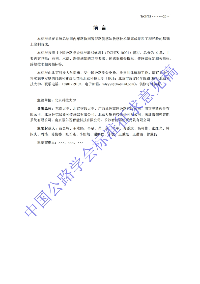 《车路协同路侧感知传感技术标准》348072@abc1个月前发布关注私信0.66MB23页026《车路协同路侧感知传感技术标准》此内容为付费资源,请付费后查看¥17¥19黄金会员免费钻石会员免费立即购买您当前未登录!建议登陆后购买,可保存购买订单付费资源 第1页 / 共23页 第2页 / 共23页 第3页 / 共23页 第4页 / 共23页 第5页 / 共23页 试读已结束,还剩18页,您可下载完整版后进行离线阅读 THE END标准规范 文本预览 I/CHTS×x××x一20x×ICS号CCS号团体标准T/CHTS XXXXX-XXXX车路协同智能路侧感知传感技术Sensing Technology Standard of Intelligent Roadside Perceptionfor Cooperative Vehicle Infrastructure Systems中国公路(征求意见稿)XXx-Xx-Xx发布XXX-XX-Xx实施中国公路学会发布 查看更多 收起部分 喜欢就支持一下吧收藏