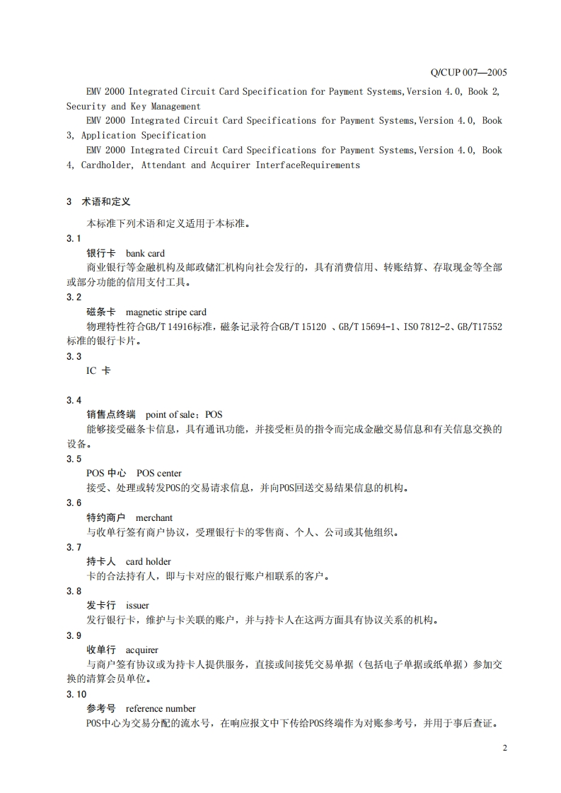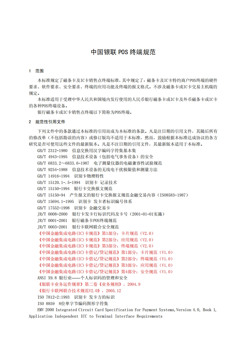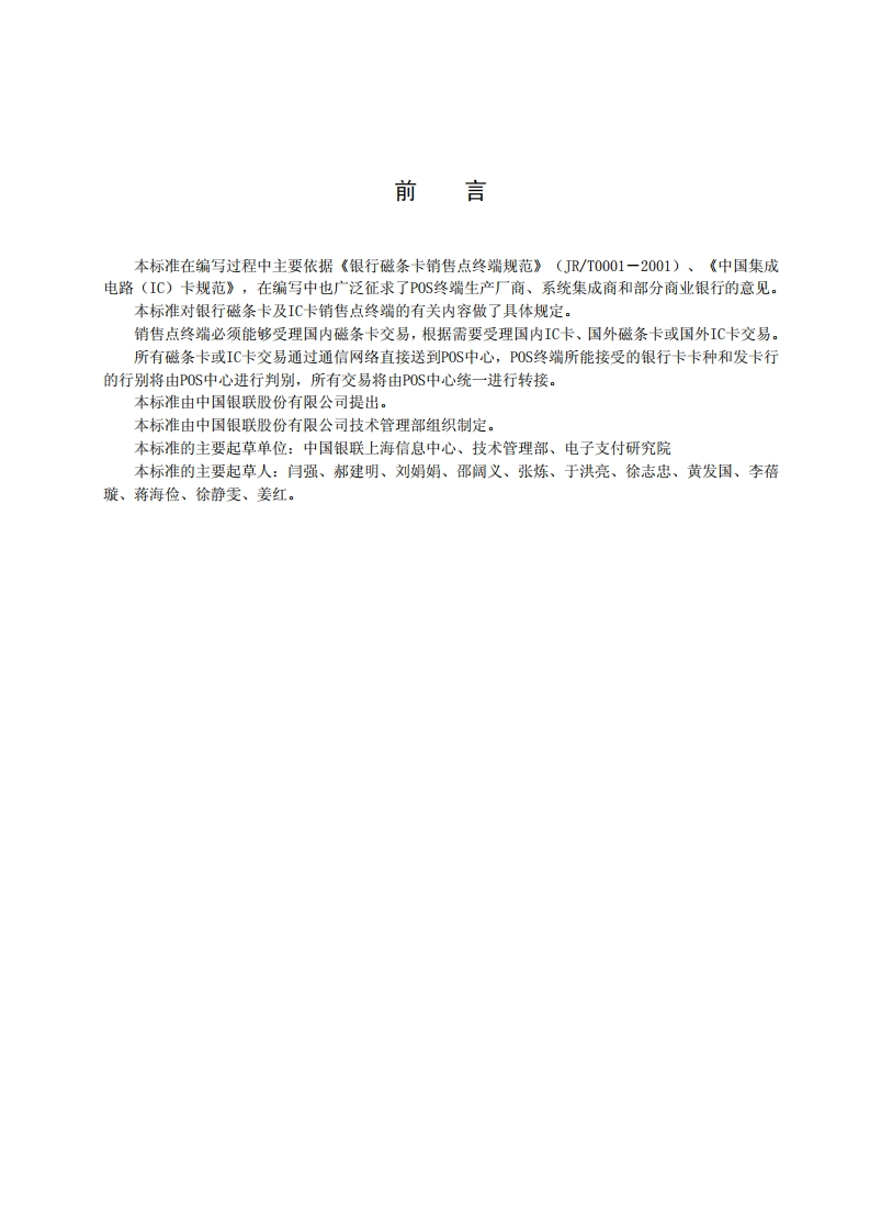 中国银联直联POS终端规范-(增加批结算修订内容)348072@abc1个月前发布关注私信1.64MB166页023中国银联直联POS终端规范-(增加批结算修订内容)此内容为付费资源,请付费后查看¥17¥19黄金会员免费钻石会员免费立即购买您当前未登录!建议登陆后购买,可保存购买订单付费资源 第1页 / 共166页 第2页 / 共166页 第3页 / 共166页 第4页 / 共166页 第5页 / 共166页 试读已结束,还剩161页,您可下载完整版后进行离线阅读 THE END标准规范 文本预览 OCUP中国银联股份有限公司企业标准Q/CUP007-2005代替Q/CUP007-2004中国银联POS终端规范Specification for point of sale(POS)terminal××××-××-××发布××××-××-××实施中国银联股份有限公司发布 查看更多 收起部分 喜欢就支持一下吧收藏