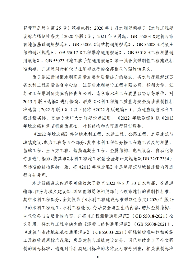 (苏水办基〔2023〕3号省水利厅发布《水利工程质量与安全所涉强制生标准选编(2022年版)》附件348072@abc5天前发布关注私信3.48MB223页0277(苏水办基〔2023〕3号省水利厅发布《水利工程质量与安全所涉强制生标准选编(2022年版)》附件此内容为付费资源,请付费后查看¥17¥19黄金会员免费钻石会员免费立即购买您当前未登录!建议登陆后购买,可保存购买订单付费资源 第1页 / 共223页 第2页 / 共223页 第3页 / 共223页 第4页 / 共223页 第5页 / 共223页 试读已结束,还剩218页,您可下载完整版后进行离线阅读 © 版权声明文章版权归作者所有,未经允许请勿转载。THE END标准规范 文本预览 水利工程施工质量与安全所涉FOR QUALITY AND SAFETY OF HYDRAULIC ENGINEERING CONSTRUCTION强制性标准选编SELECTION OF COMPULSORY PROVINSIONS(2022年版)江苏省水利厅WATER RESOURCES DEPARTMENT OF JIANGSU PROVINCE江苏人民出版社www.jspph.com 查看更多 收起部分 喜欢就支持一下吧点赞7 分享QQ空间微博QQ好友海报分享复制链接收藏