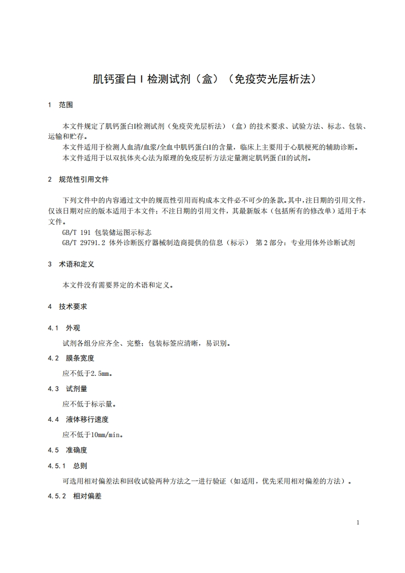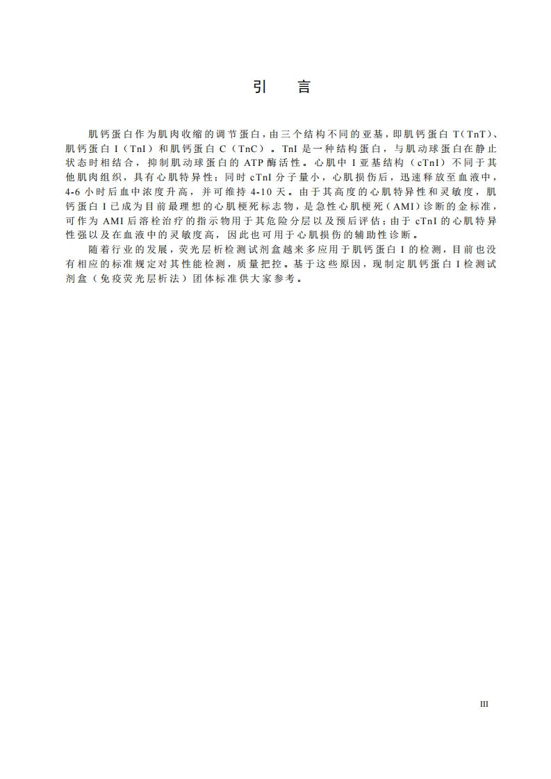 1-1:肌钙蛋白I检测试剂(盒)(免疫荧光层析法)-348072@abc4天前发布关注私信0.22MB9页04061-1:肌钙蛋白I检测试剂(盒)(免疫荧光层析法)-此内容为付费资源,请付费后查看¥19¥23黄金会员免费钻石会员免费立即购买您当前未登录!建议登陆后购买,可保存购买订单付费资源 第1页 / 共9页 第2页 / 共9页 第3页 / 共9页 第4页 / 共9页 第5页 / 共9页 试读已结束,还剩4页,您可下载完整版后进行离线阅读 © 版权声明文章版权归作者所有,未经允许请勿转载。THE END土木工程工学类建材家居标准规范石油化工行业资料 文本预览 1CS11.100C44团体标准T/CSBME XXX-XXXX肌钙蛋白I检测试剂(盒)(免疫荧光层析法)Troponin I test reagent (kit)(immunof luorescence chromatography)(征求意见稿)XXXX-XX-XX发布XXXX-XX-XX实施中国生物医学工程学会发布 查看更多 收起部分 喜欢就支持一下吧点赞6 分享QQ空间微博QQ好友海报分享复制链接收藏