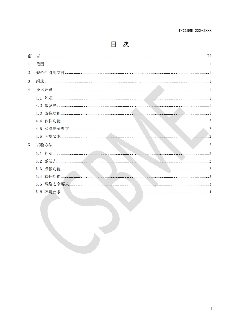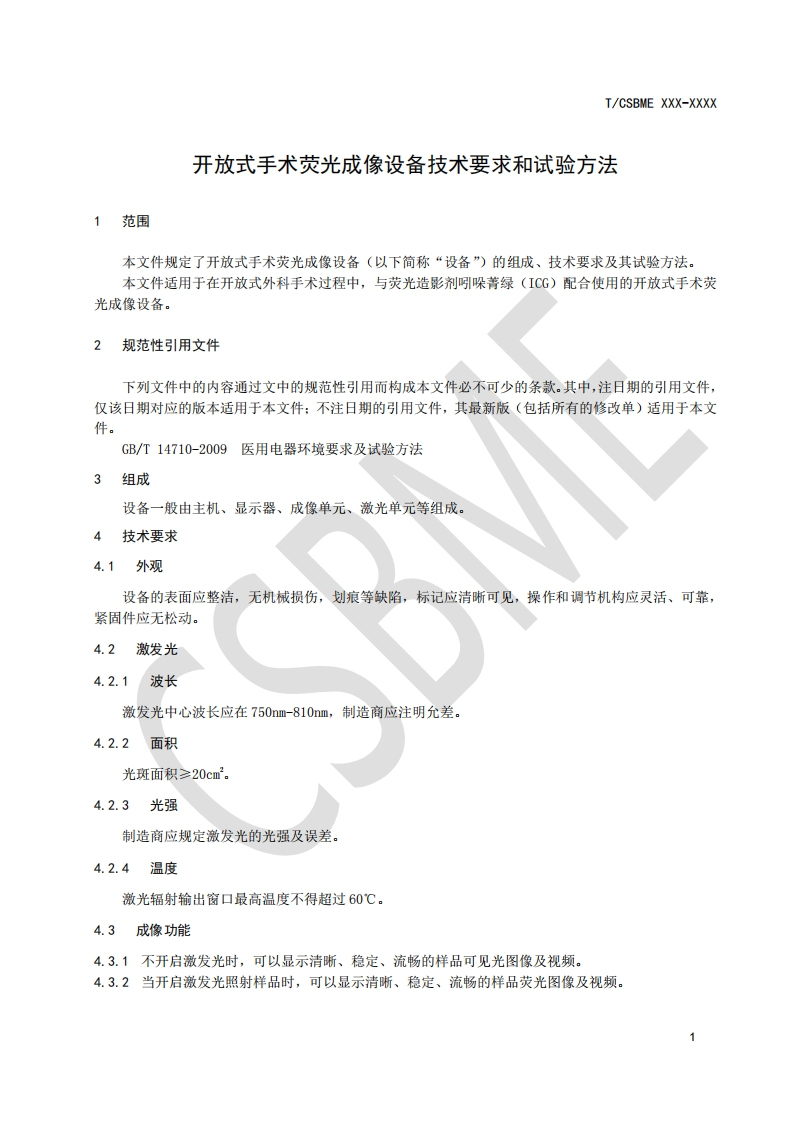 10511.040.99041团体标准T/CSBME XXX-XXXX开放式手术荧光成像设备技术要求和试验方法Technical requirements and Test Method of Fluorescence Image GuidedSystem for Open Surgery(征求意见稿)“在提交反馈意见时,请将您知道的相关专利连同支持性文件一并附上”XXXX-XX-Xx发布XXXX-XX-XX实施中国生物医学工程学会发布