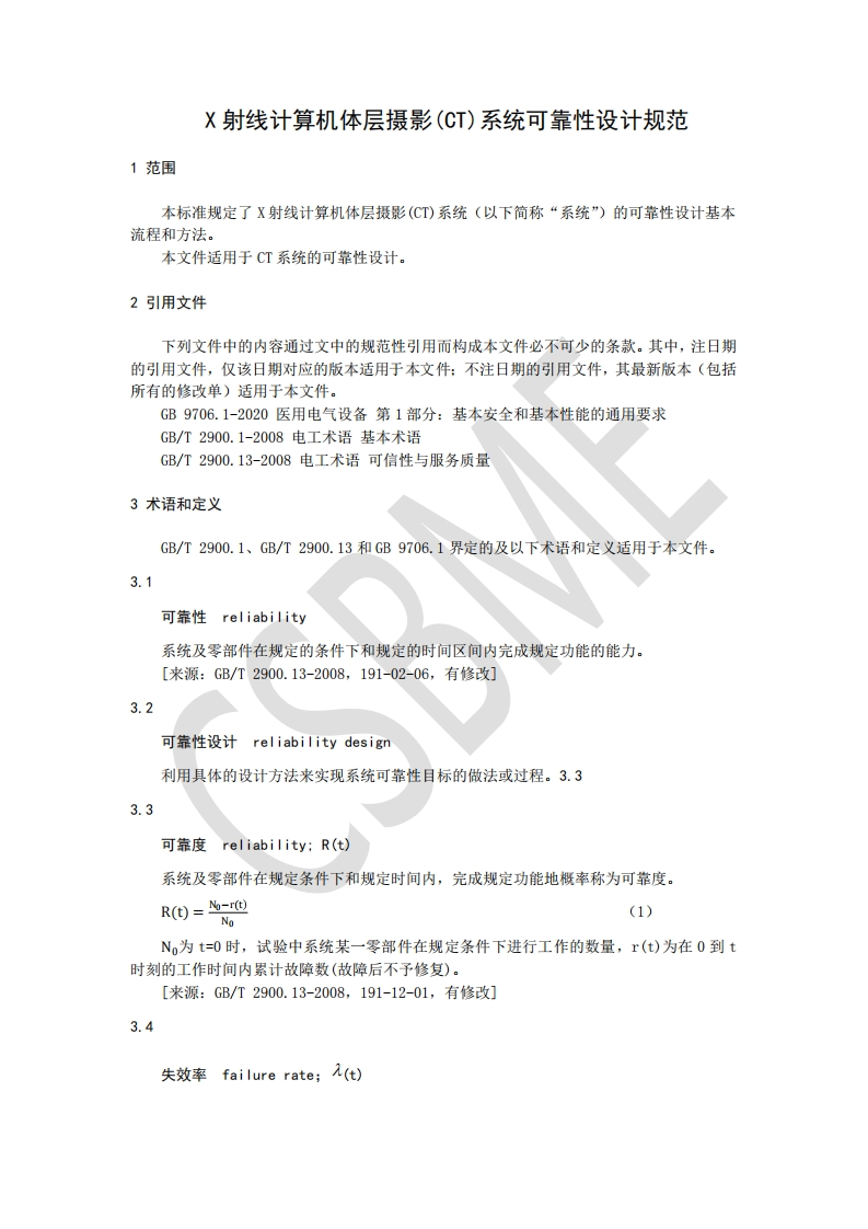 3:《X射线计算机体层摄影(CT)系统可靠性设计规范》-348072@abc5天前发布关注私信1.17MB21页043113:《X射线计算机体层摄影(CT)系统可靠性设计规范》-此内容为付费资源,请付费后查看¥19¥23黄金会员免费钻石会员免费立即购买您当前未登录!建议登陆后购买,可保存购买订单付费资源 第1页 / 共21页 第2页 / 共21页 第3页 / 共21页 第4页 / 共21页 第5页 / 共21页 试读已结束,还剩16页,您可下载完整版后进行离线阅读 © 版权声明文章版权归作者所有,未经允许请勿转载。THE END土木工程工学类建材家居标准规范石油化工行业资料 文本预览 ICS X XXC XX团体标准T/CSBME XXXX-XXXXX射线计算机体层摄影(CT)系统可靠性设计规范Specification for reliability design of X-ray ComputedTomography (CT)systemXXXX-XX-XX发布XXXX-XX-XX实施中国生物医学工程学会发布 查看更多 收起部分 喜欢就支持一下吧点赞11 分享QQ空间微博QQ好友海报分享复制链接收藏
