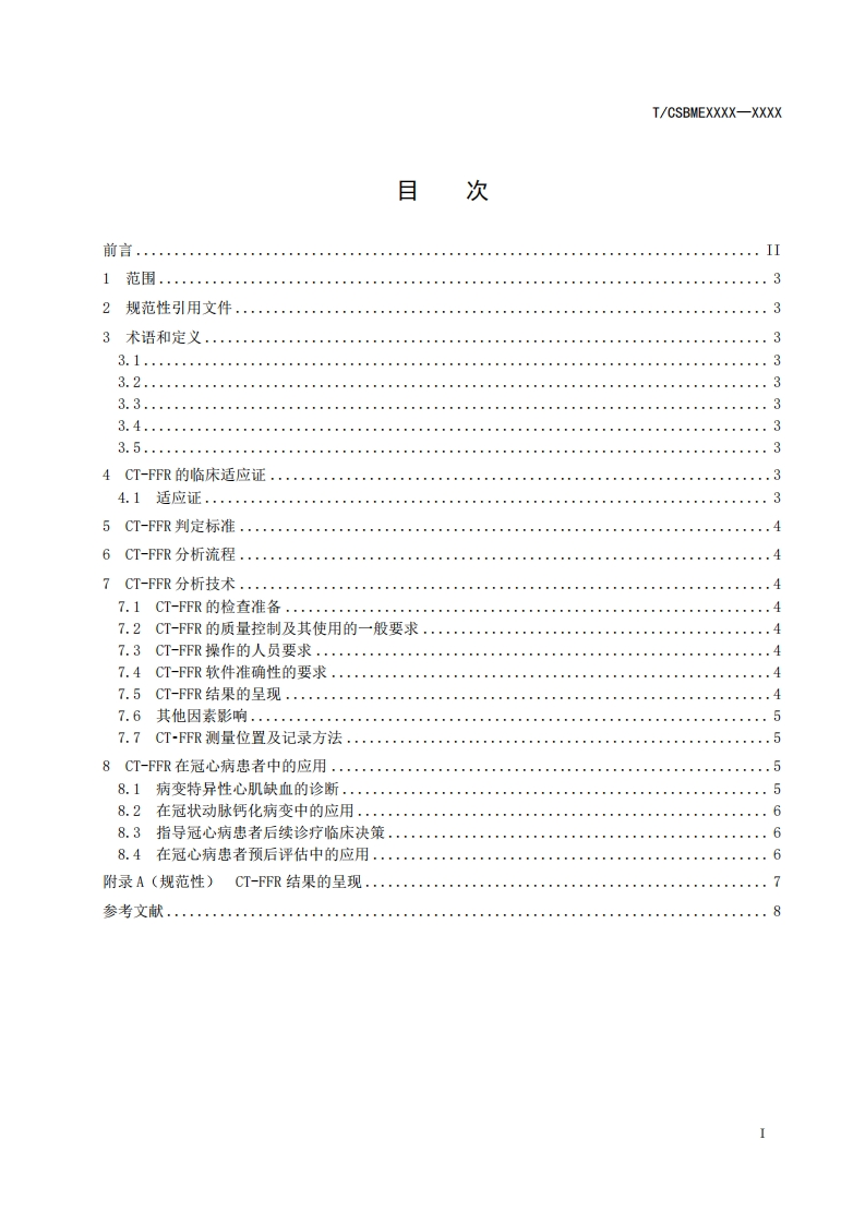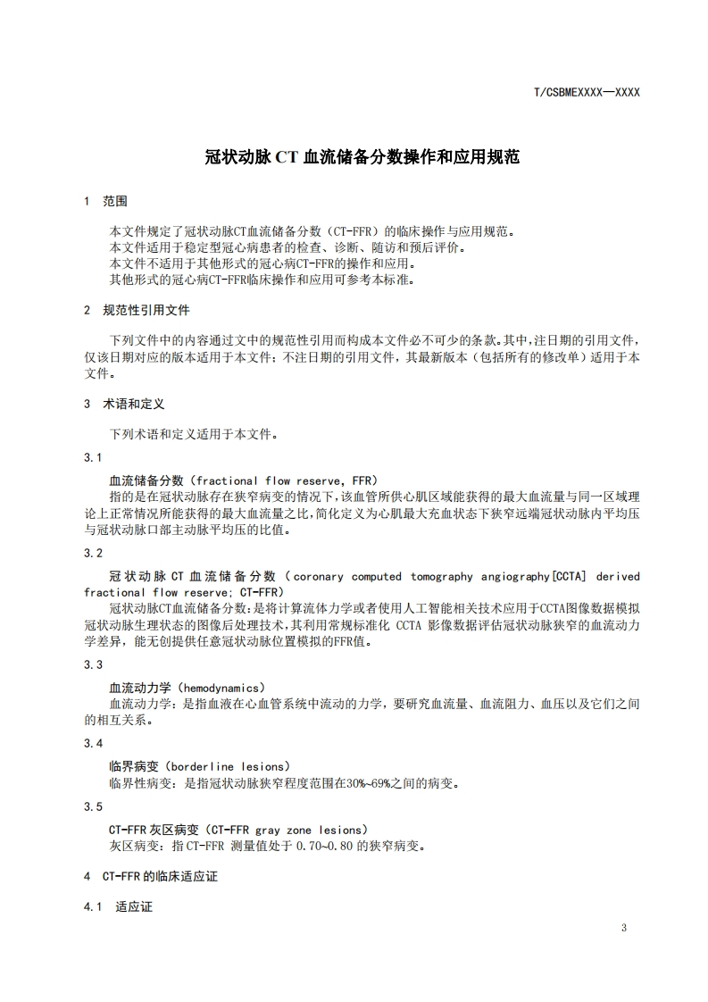ICS点击此处添加ICS号CCS点击此处添加cCS号团体标准T/CSBMEXXXX-XXXX冠状动脉CT血流储备分数临床操作和应用规范The Clinical Operation and Application Standard of CT-derived Fractional FlowReserve(征求意见稿)在提交反馈意见时,请将您知道的相关专利连同支持性文件一并附上。XXXX-XX-XX发布XXXX-XX-XX实施中国生物医学工程学会发布
