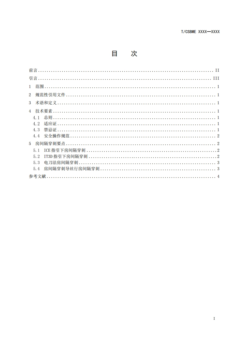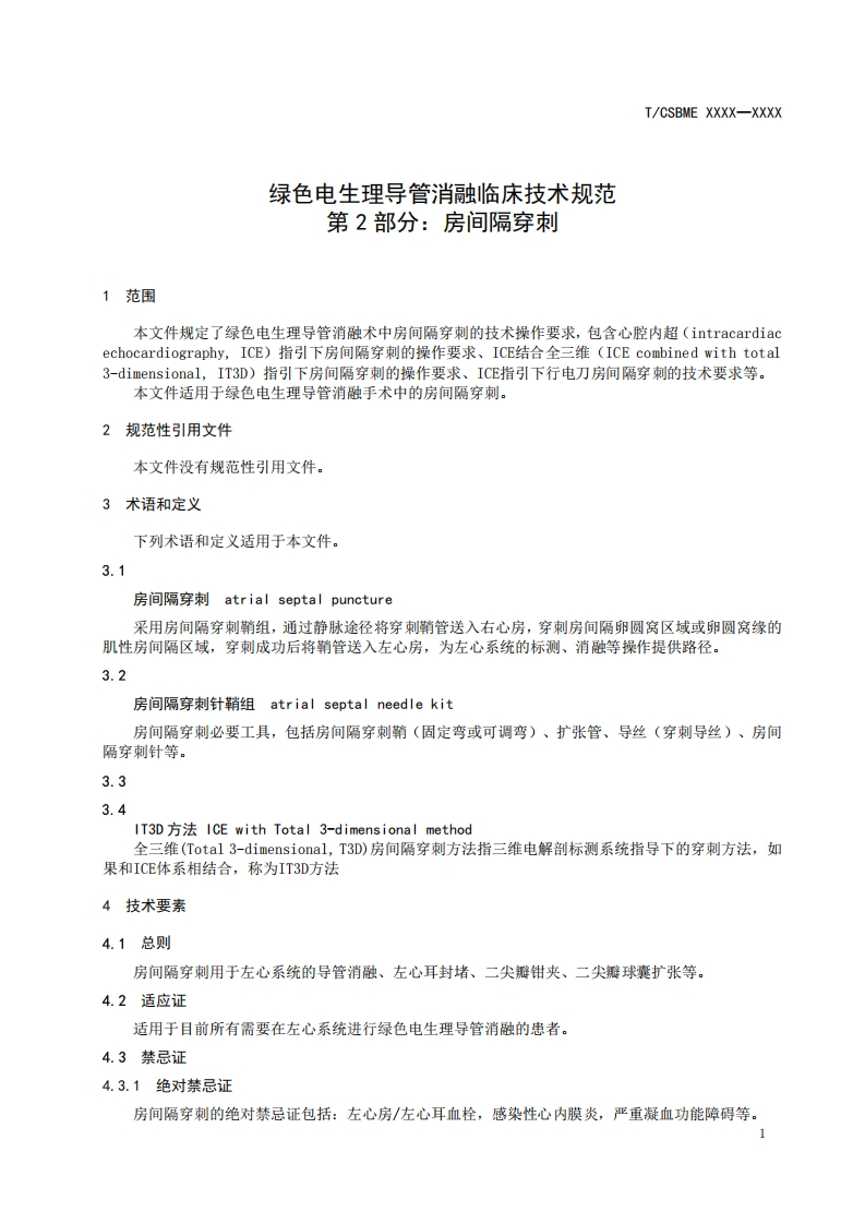 ICS点击此处添加ICS号CCS点击此处添加CCs号T团体标准T/CSBME XXXX-XXXX绿色电生理导管消融临床技术规范第2部分:房间隔穿刺Clinical technical standards for green EP catheter ablationPart2:Atrialseptalpuncture征求意见稿在提交反馈意见时,请将您知道的相关专利连同支持性文件一并附上。XXXX-Xx-XX发布XXXX-Xx-XX实施中国生物医学工程学会发布