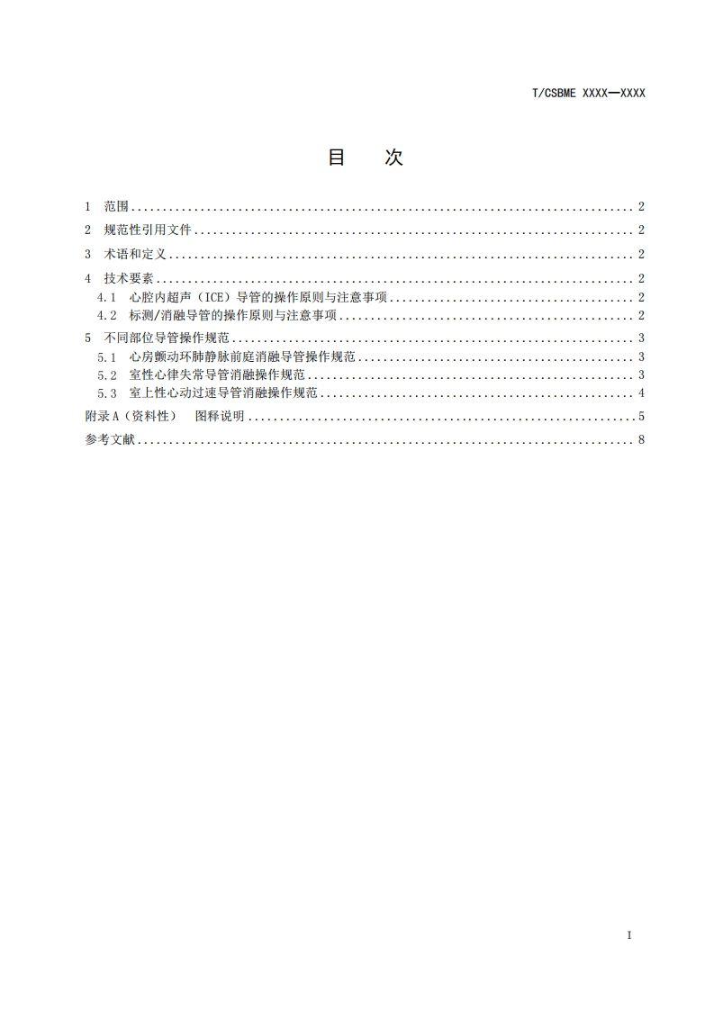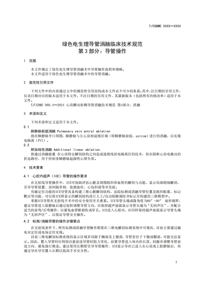 ICS点击此处添加ICS号CCS点击此处添加CCS号T团体标准T/CSBME XXXX-XXXX绿色电生理导管消融临床技术规范第3部分:导管操作Clinical technical standards for green EP catheter ablationPart3:Catheter Manipulation征求意见稿在提交反馈意见时,请将您知道的相关专利连同支持性文件一并附上。XXXX-Xx-XX发布XXXX-Xx-XX实施中国生物医学工程学会发布