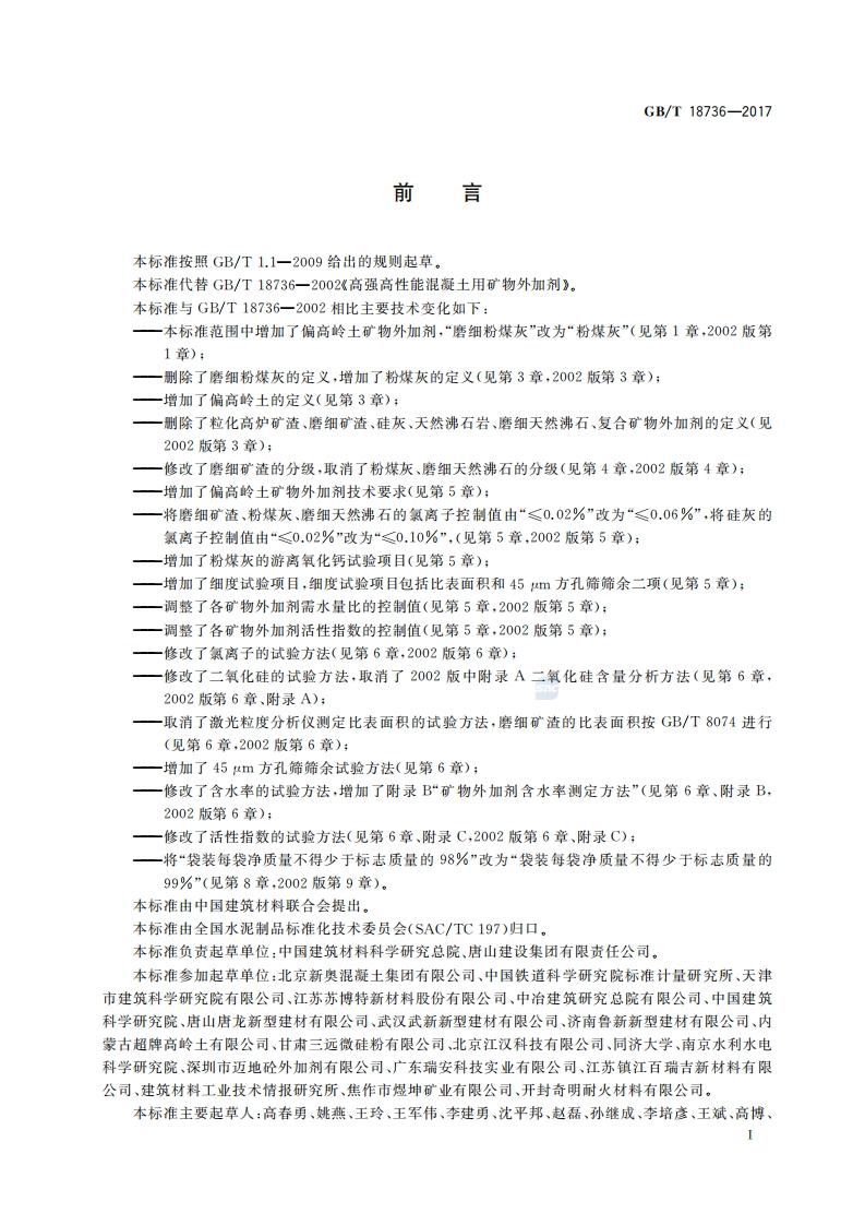GB∕T-18736—2017–高强高性能混凝土用矿物外加剂348072@abc4天前发布关注私信0.91MB15页04414GB∕T-18736—2017–高强高性能混凝土用矿物外加剂此内容为付费资源,请付费后查看¥19¥23黄金会员免费钻石会员免费立即购买您当前未登录!建议登陆后购买,可保存购买订单付费资源 第1页 / 共15页 第2页 / 共15页 第3页 / 共15页 第4页 / 共15页 第5页 / 共15页 试读已结束,还剩10页,您可下载完整版后进行离线阅读 © 版权声明文章版权归作者所有,未经允许请勿转载。THE END土木工程工学类建材家居标准规范石油化工行业资料 文本预览 ICS91.100.30Q13B中华人民共和国国家标准GB/T18736-2017代替GB/T18736一2002网高强高性能混凝土用矿物外加剂Mineral admixtures for high strengthand high performance concrete2017-03-09发布2018-02-01实施中华人民共和国国家质量监督检验检疫总局发布中国国家标准化管理委员会 查看更多 收起部分 喜欢就支持一下吧点赞14 分享QQ空间微博QQ好友海报分享复制链接收藏