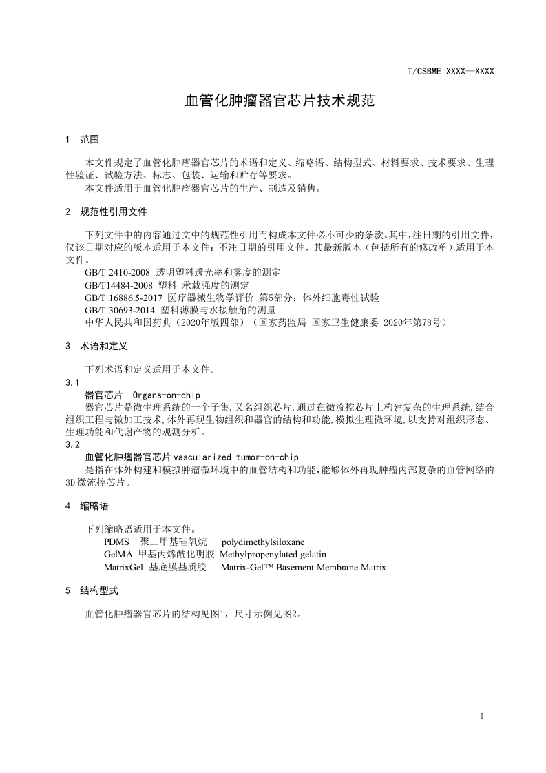 二:血管化肿瘤器官芯片技术规范-348072@abc4天前发布关注私信0.28MB6页0235二:血管化肿瘤器官芯片技术规范-此内容为付费资源,请付费后查看¥19¥23黄金会员免费钻石会员免费立即购买您当前未登录!建议登陆后购买,可保存购买订单付费资源 第1页 / 共6页 第2页 / 共6页 第3页 / 共6页 第4页 / 共6页 第5页 / 共6页 试读已结束,还剩1页,您可下载完整版后进行离线阅读 © 版权声明文章版权归作者所有,未经允许请勿转载。THE END土木工程工学类建材家居标准规范石油化工行业资料 文本预览 ICS11.100CCS C 27I/CSBME中国生物医学工程学会团体标准T/CSBME XXXX-XXXX血管化肿瘤器官芯片技术规范Technical specification for the construction of vascularized tumor organ chip(工作组讨论稿)在提交反馈意见时,请将您知道的相关专利连同支持性文件一并附上。XXXX-x-X发布XXXX-Xx-X实施中国生物医学工程学会发布 查看更多 收起部分 喜欢就支持一下吧点赞5 分享QQ空间微博QQ好友海报分享复制链接收藏