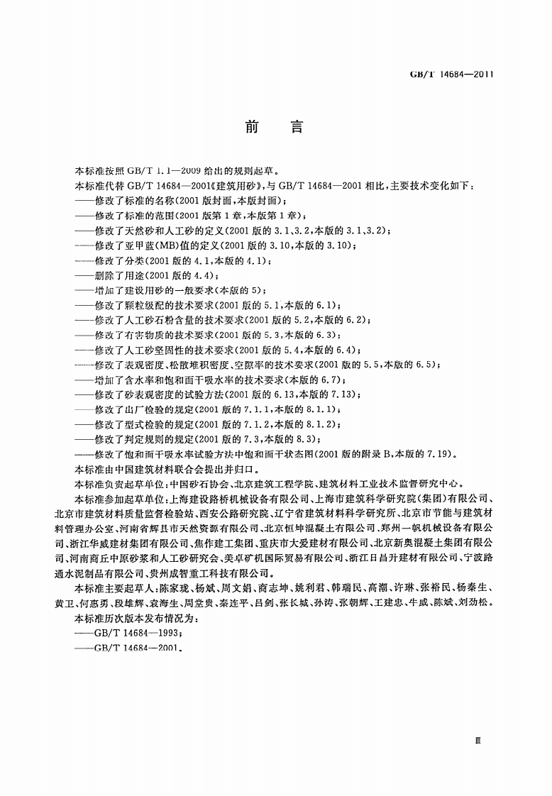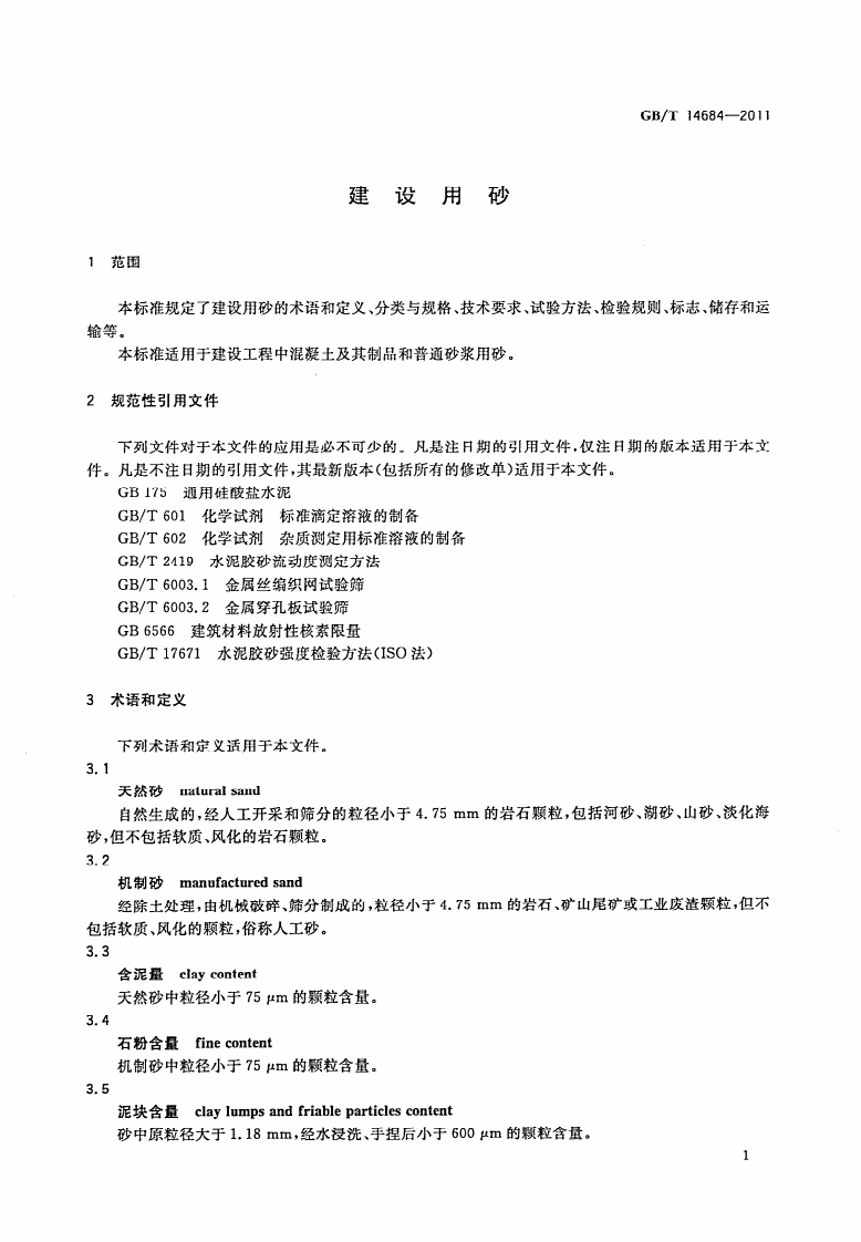 建设用砂GB/T14684-2011348072@abc4天前发布关注私信1.63MB32页03411建设用砂GB/T14684-2011此内容为付费资源,请付费后查看¥19¥23黄金会员免费钻石会员免费立即购买您当前未登录!建议登陆后购买,可保存购买订单付费资源 第1页 / 共32页 第2页 / 共32页 第3页 / 共32页 第4页 / 共32页 第5页 / 共32页 试读已结束,还剩27页,您可下载完整版后进行离线阅读 © 版权声明文章版权归作者所有,未经允许请勿转载。THE END土木工程工学类建材家居标准规范石油化工行业资料 文本预览 B891.1oa.10中华人民共和国国家标准GB/T14684-2011代替GB/T14684-2001建设用砂Sand for construction2011-06-16发布2012-02-01实施中华人民共和国国家质量监督检验检疫总局发布中国国家标准化管理委员会 查看更多 收起部分 喜欢就支持一下吧点赞11 分享QQ空间微博QQ好友海报分享复制链接收藏