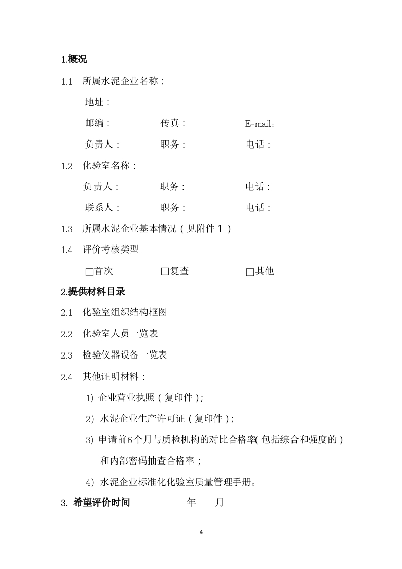 标准化化验室评价申请书348072@abc4天前发布关注私信28.14KB8页0339标准化化验室评价申请书此内容为付费资源,请付费后查看¥19¥23黄金会员免费钻石会员免费立即购买您当前未登录!建议登陆后购买,可保存购买订单付费资源 第1页 / 共8页 第2页 / 共8页 第3页 / 共8页 第4页 / 共8页 第5页 / 共8页 试读已结束,还剩3页,您可下载完整版后进行离线阅读 © 版权声明文章版权归作者所有,未经允许请勿转载。THE END土木工程工学类建材家居标准规范石油化工行业资料 文本预览 水泥生产企业标准化化验室评价申请书企业名称:(盖章)申请日期: 查看更多 收起部分 喜欢就支持一下吧点赞9 分享QQ空间微博QQ好友海报分享复制链接收藏