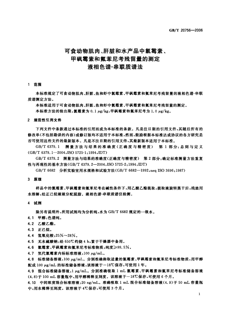 GB_T-20756-2006-可食动物肌肉、肝脏和水产品中氯霉素、甲砜霉素和氟苯尼考残留量的测定-液相色谱-串联质谱法348072@abc3个月前发布关注私信0.94MB9页044GB_T-20756-2006-可食动物肌肉、肝脏和水产品中氯霉素、甲砜霉素和氟苯尼考残留量的测定-液相色谱-串联质谱法此内容为付费资源,请付费后查看¥17¥19黄金会员免费钻石会员免费立即购买您当前未登录!建议登陆后购买,可保存购买订单付费资源 第1页 / 共9页 第2页 / 共9页 第3页 / 共9页 第4页 / 共9页 第5页 / 共9页 试读已结束,还剩4页,您可下载完整版后进行离线阅读 THE END标准规范 喜欢就支持一下吧收藏