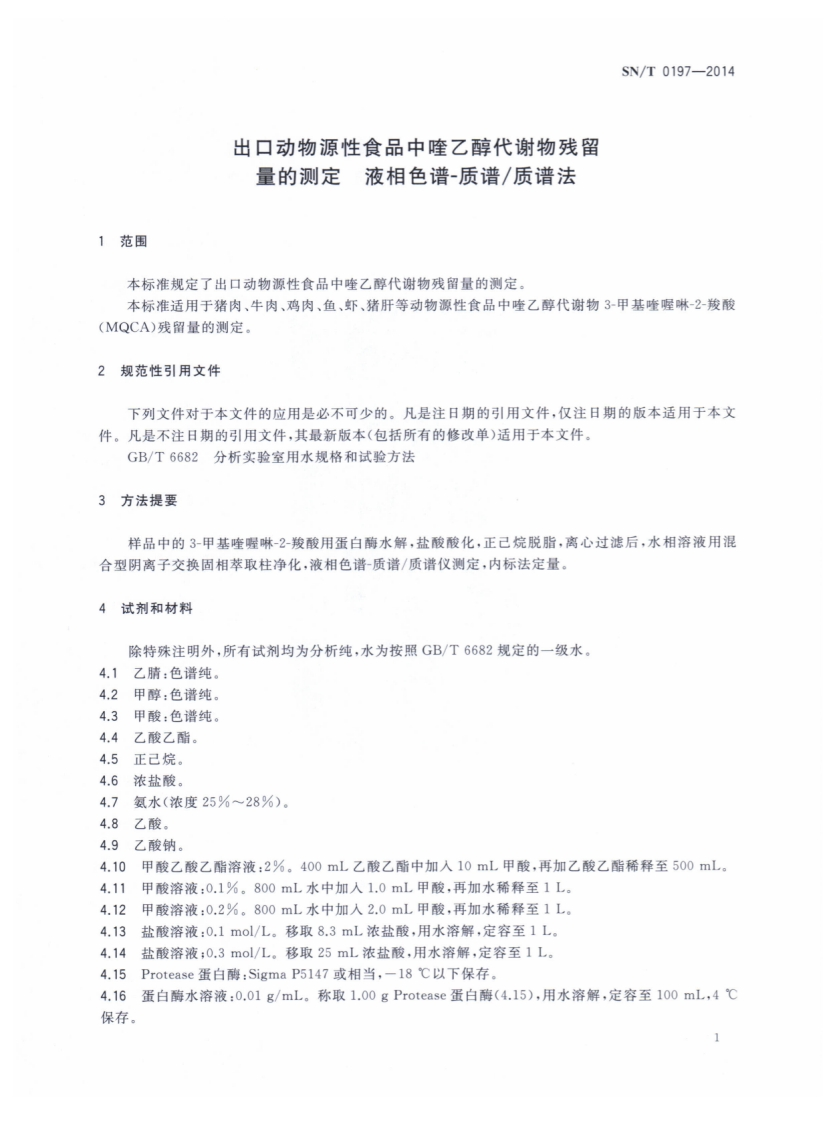 SN_T-0197-2014-出口动物源性食品中喹乙醇代谢物残留量的测定-液相色谱-质谱_质谱法348072@abc1个月前发布关注私信11.42MB11页046SN_T-0197-2014-出口动物源性食品中喹乙醇代谢物残留量的测定-液相色谱-质谱_质谱法此内容为付费资源,请付费后查看¥17¥19黄金会员免费钻石会员免费立即购买您当前未登录!建议登陆后购买,可保存购买订单付费资源 第1页 / 共11页 第2页 / 共11页 第3页 / 共11页 第4页 / 共11页 第5页 / 共11页 试读已结束,还剩6页,您可下载完整版后进行离线阅读 THE END标准规范 喜欢就支持一下吧收藏