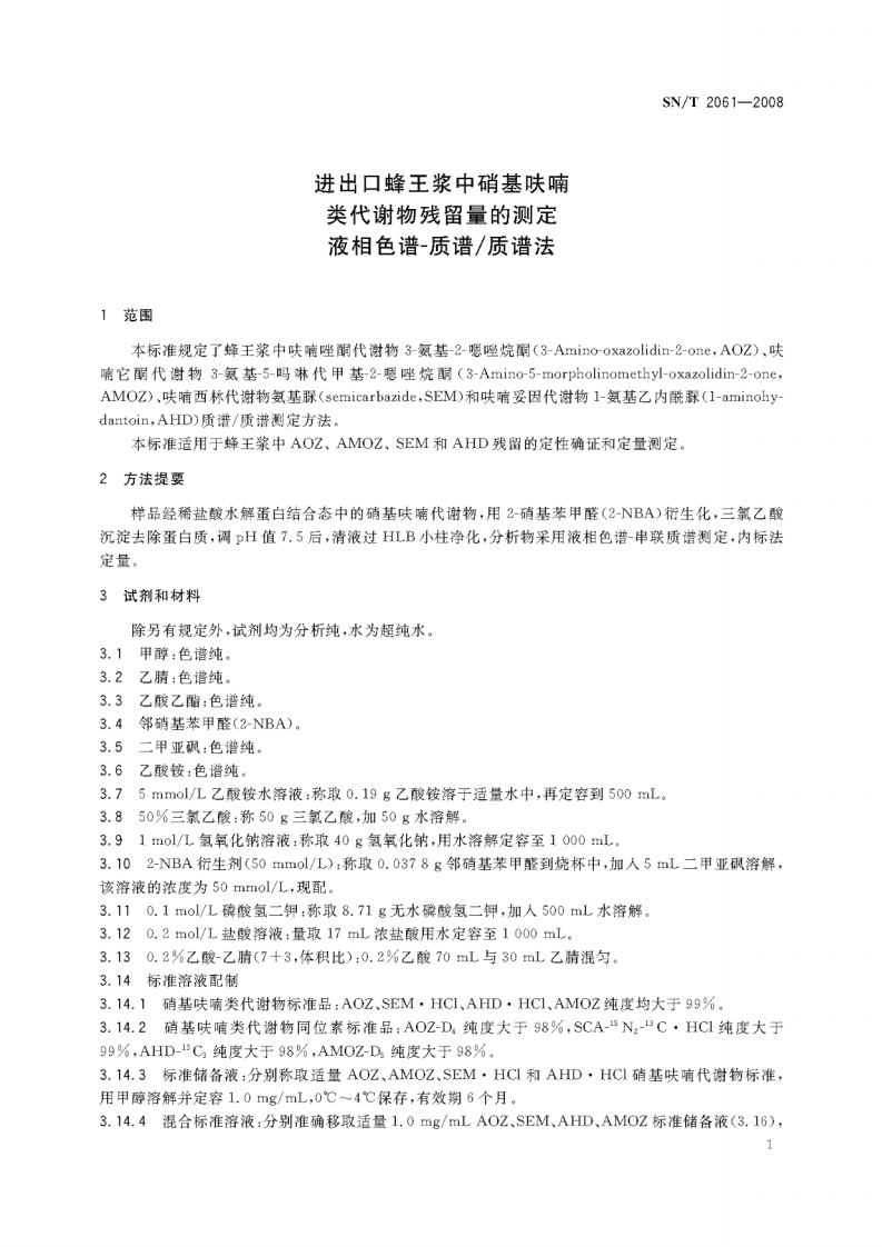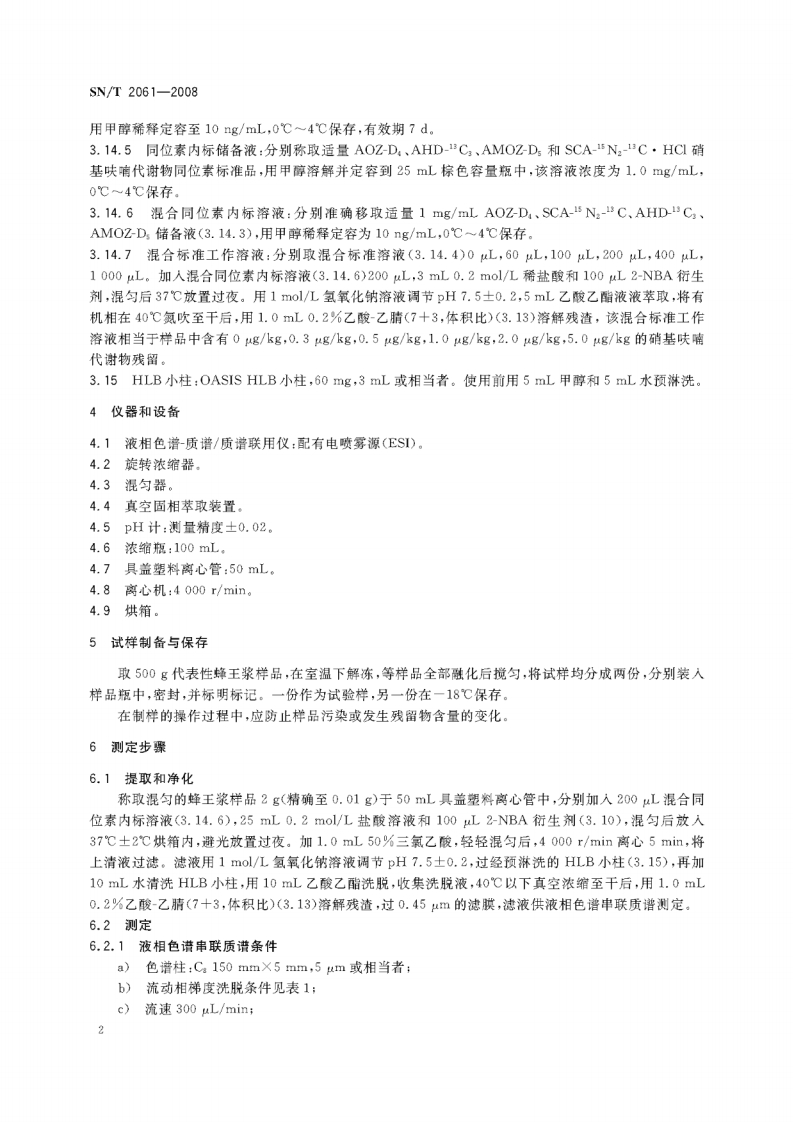 SN_T-2061-2008-进出口蜂王浆中硝基呋喃类代谢物残留量的测定液相色谱-质谱_质谱法348072@abc1个月前发布关注私信1.69MB17页036SN_T-2061-2008-进出口蜂王浆中硝基呋喃类代谢物残留量的测定液相色谱-质谱_质谱法此内容为付费资源,请付费后查看¥17¥19黄金会员免费钻石会员免费立即购买您当前未登录!建议登陆后购买,可保存购买订单付费资源 第1页 / 共17页 第2页 / 共17页 第3页 / 共17页 第4页 / 共17页 第5页 / 共17页 试读已结束,还剩12页,您可下载完整版后进行离线阅读 THE END标准规范 喜欢就支持一下吧收藏