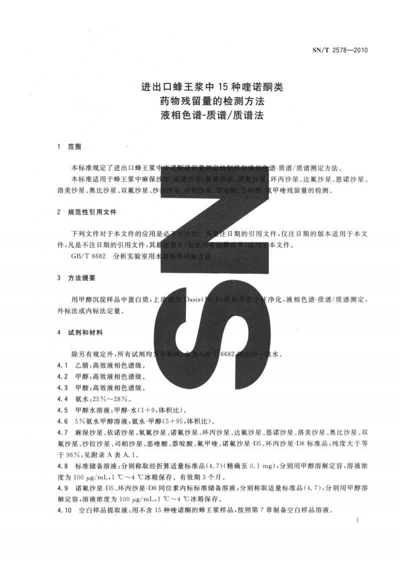 SN_T-2578-2010-进出口蜂王浆中15种喹诺酮类药物残留量的检测方法-液相色谱-质谱_质谱法348072@abc1个月前发布关注私信6.53MB25页024SN_T-2578-2010-进出口蜂王浆中15种喹诺酮类药物残留量的检测方法-液相色谱-质谱_质谱法此内容为付费资源,请付费后查看¥17¥19黄金会员免费钻石会员免费立即购买您当前未登录!建议登陆后购买,可保存购买订单付费资源 第1页 / 共25页 第2页 / 共25页 第3页 / 共25页 第4页 / 共25页 第5页 / 共25页 试读已结束,还剩20页,您可下载完整版后进行离线阅读 THE END标准规范 喜欢就支持一下吧收藏
