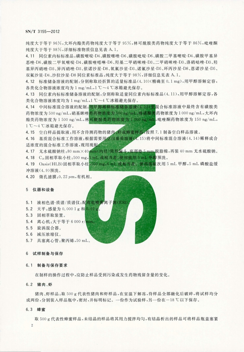 SNT-3155-2012-出口猪肉、虾、蜂蜜中多类药物残留量的测定-液相色谱-质谱质谱法348072@abc1个月前发布关注私信25.44MB52页035SNT-3155-2012-出口猪肉、虾、蜂蜜中多类药物残留量的测定-液相色谱-质谱质谱法此内容为付费资源,请付费后查看¥17¥19黄金会员免费钻石会员免费立即购买您当前未登录!建议登陆后购买,可保存购买订单付费资源 第1页 / 共52页 第2页 / 共52页 第3页 / 共52页 第4页 / 共52页 第5页 / 共52页 试读已结束,还剩47页,您可下载完整版后进行离线阅读 THE END标准规范 喜欢就支持一下吧收藏