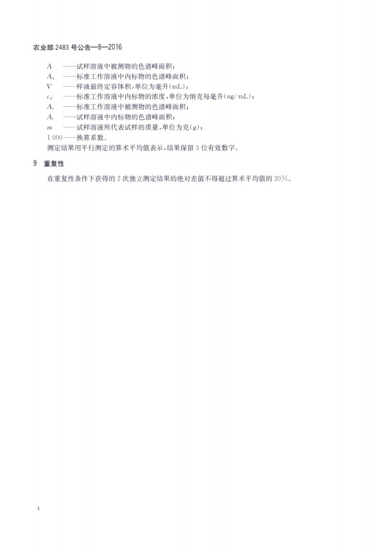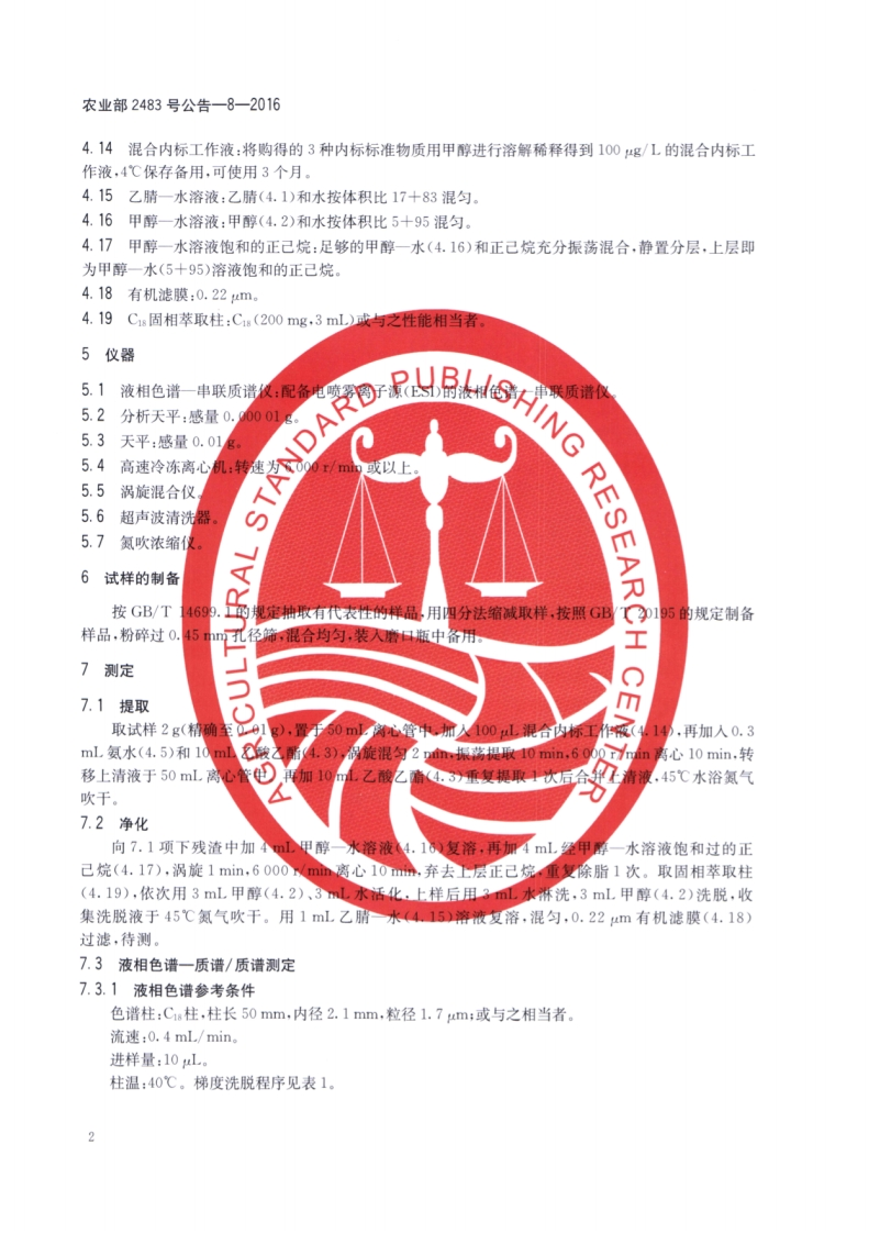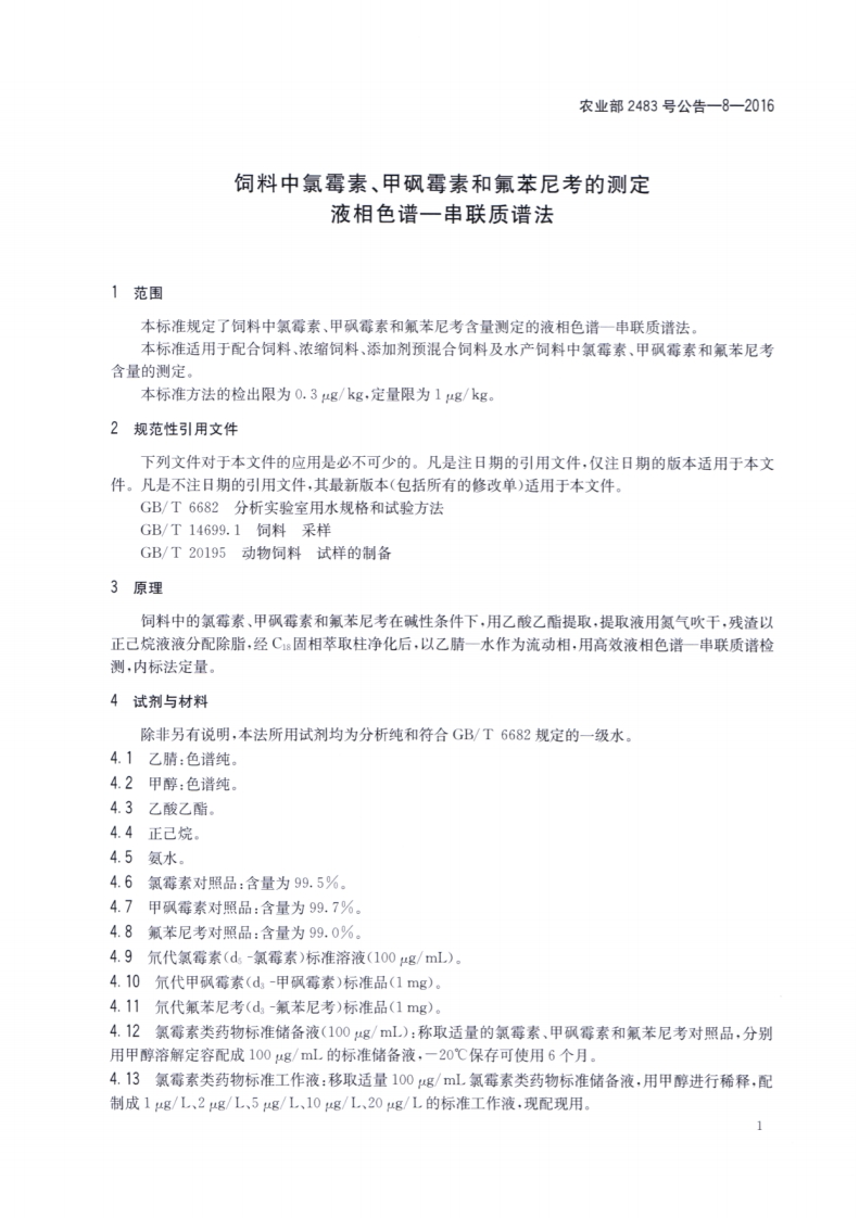 农业部2483号公告-8-2016-饲料中氯霉素、甲砜霉素和氟苯尼考的测定-液相色谱-串联质谱法348072@abc1个月前发布关注私信6.66MB8页029农业部2483号公告-8-2016-饲料中氯霉素、甲砜霉素和氟苯尼考的测定-液相色谱-串联质谱法此内容为付费资源,请付费后查看¥11¥19黄金会员免费钻石会员免费立即购买您当前未登录!建议登陆后购买,可保存购买订单付费资源 第1页 / 共8页 第2页 / 共8页 第3页 / 共8页 第4页 / 共8页 第5页 / 共8页 第6页 / 共8页 试读已结束,还剩2页,您可下载完整版后进行离线阅读 THE END标准规范规章制度 喜欢就支持一下吧收藏