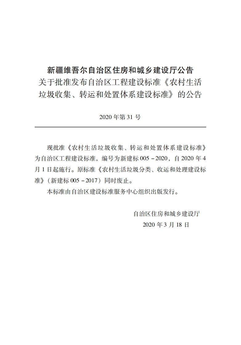 农村生活垃圾收集、转运和处置体系建设标准(新建标005-2020)现行国家强制性标准规范348072@abc1个月前发布关注私信2.31MB49页038农村生活垃圾收集、转运和处置体系建设标准(新建标005-2020)现行国家强制性标准规范此内容为付费资源,请付费后查看¥11¥19黄金会员免费钻石会员免费立即购买您当前未登录!建议登陆后购买,可保存购买订单付费资源 第1页 / 共49页 第2页 / 共49页 第3页 / 共49页 第4页 / 共49页 第5页 / 共49页 第6页 / 共49页 试读已结束,还剩43页,您可下载完整版后进行离线阅读 THE END标准规范规章制度 喜欢就支持一下吧收藏