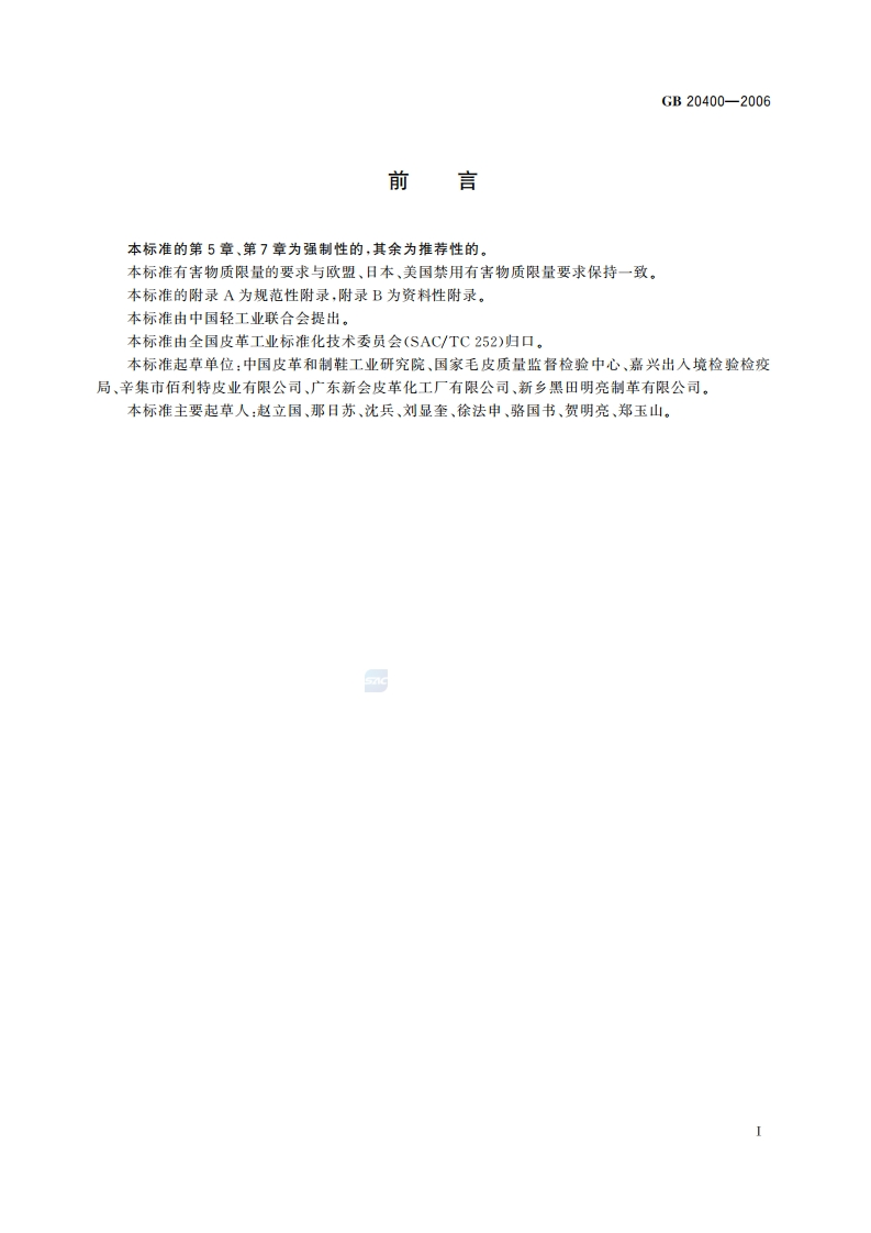 皮革和毛皮有害物质限量(GB20400-2006)现行国家强制性标准规范348072@abc1个月前发布关注私信0.25MB7页050皮革和毛皮有害物质限量(GB20400-2006)现行国家强制性标准规范此内容为付费资源,请付费后查看¥13¥19黄金会员免费钻石会员免费立即购买您当前未登录!建议登陆后购买,可保存购买订单付费资源 第1页 / 共7页 第2页 / 共7页 第3页 / 共7页 第4页 / 共7页 第5页 / 共7页 第6页 / 共7页 试读已结束,还剩1页,您可下载完整版后进行离线阅读 THE END标准规范规章制度 喜欢就支持一下吧收藏