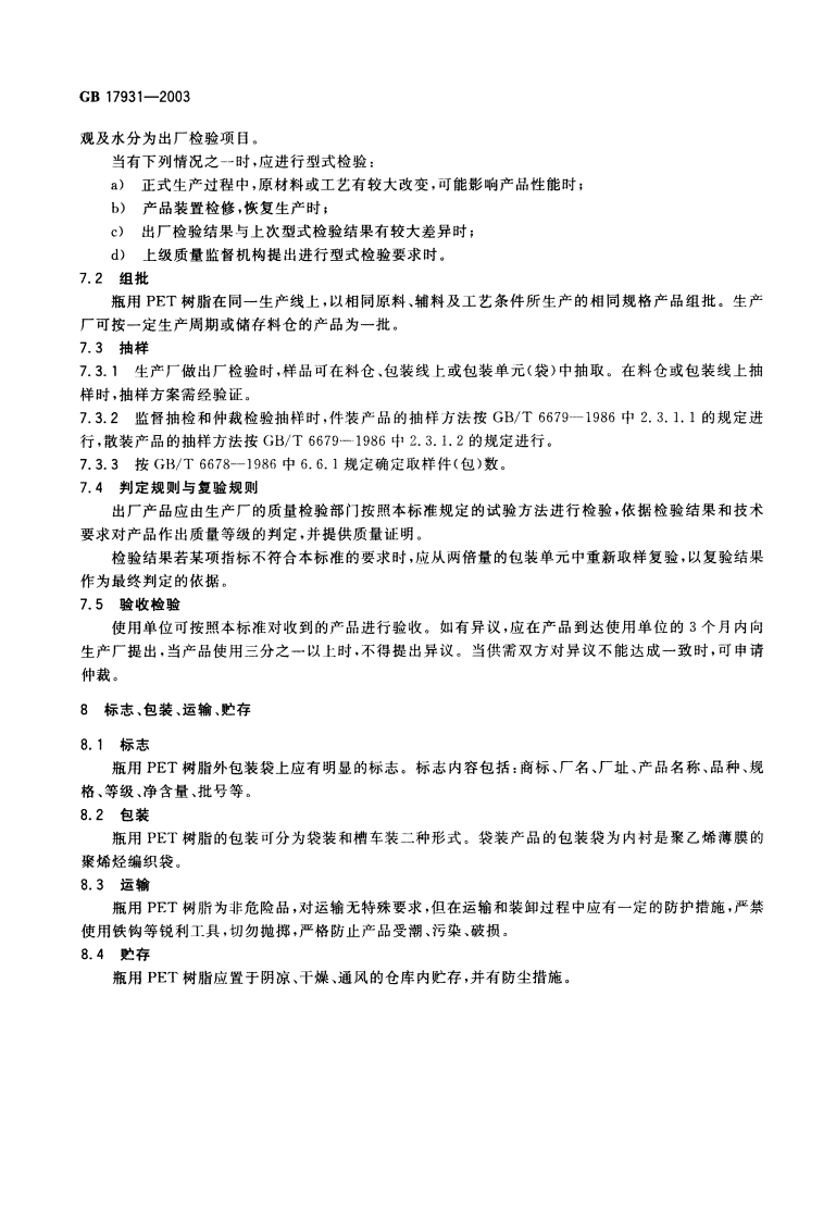 瓶用聚对苯二甲酸乙二醇酯(PET)树脂(GB17931-2003)现行国家强制性标准规范348072@abc49天前发布关注私信0.54MB15页035瓶用聚对苯二甲酸乙二醇酯(PET)树脂(GB17931-2003)现行国家强制性标准规范此内容为付费资源,请付费后查看¥11¥19黄金会员免费钻石会员免费立即购买您当前未登录!建议登陆后购买,可保存购买订单付费资源 第1页 / 共15页 第2页 / 共15页 第3页 / 共15页 第4页 / 共15页 第5页 / 共15页 第6页 / 共15页 试读已结束,还剩9页,您可下载完整版后进行离线阅读 THE END标准规范规章制度 喜欢就支持一下吧收藏