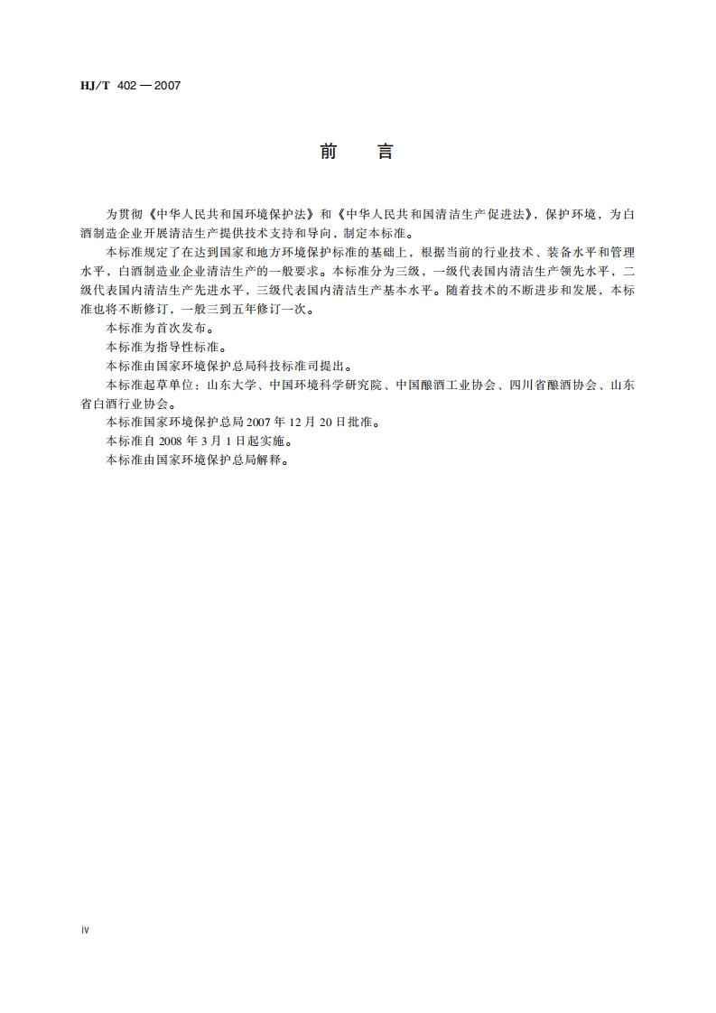 清洁生产标准白酒制造业(HJT402-2007)现行国家强制性标准规范348072@abc1个月前发布关注私信0.50MB10页043清洁生产标准白酒制造业(HJT402-2007)现行国家强制性标准规范此内容为付费资源,请付费后查看¥11¥19黄金会员免费钻石会员免费立即购买您当前未登录!建议登陆后购买,可保存购买订单付费资源 第1页 / 共10页 第2页 / 共10页 第3页 / 共10页 第4页 / 共10页 第5页 / 共10页 第6页 / 共10页 试读已结束,还剩4页,您可下载完整版后进行离线阅读 THE END标准规范规章制度 喜欢就支持一下吧收藏