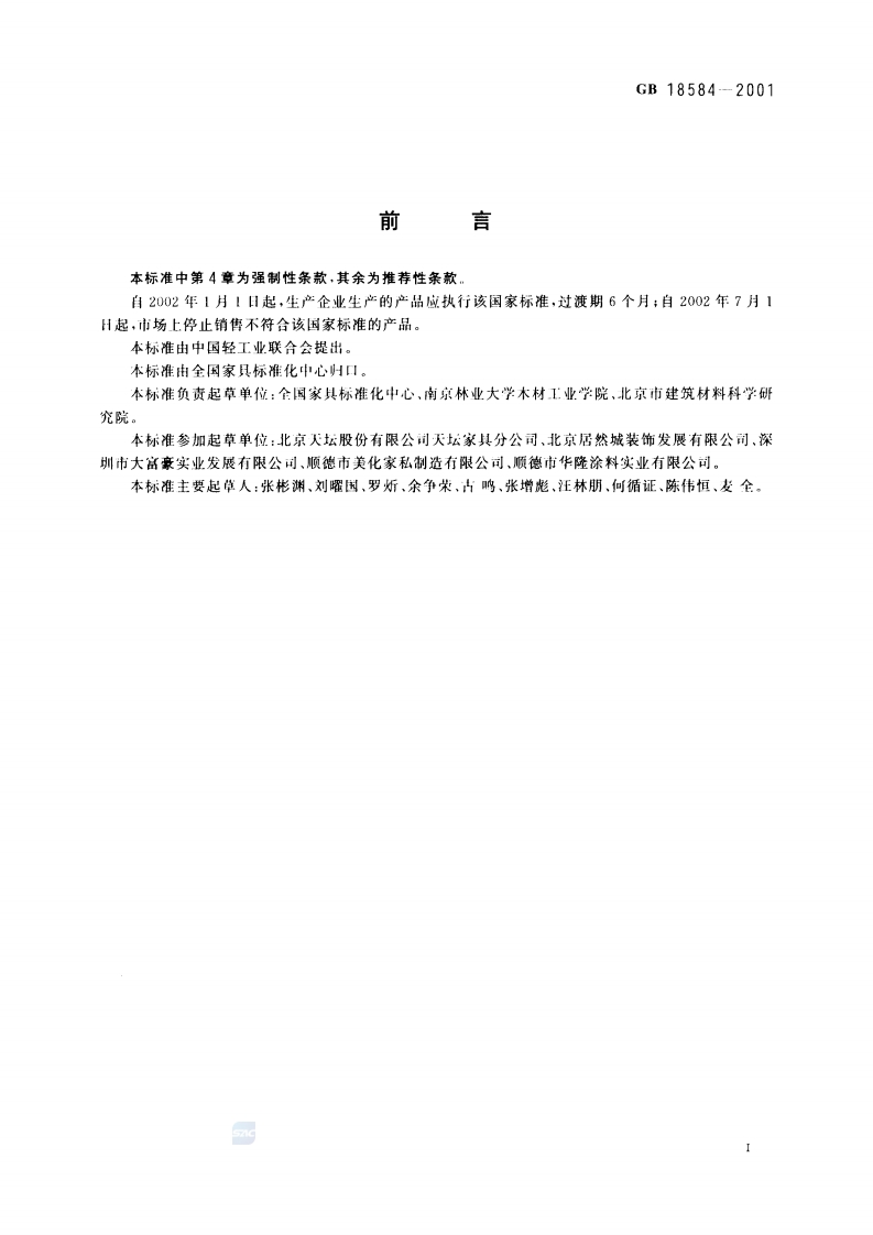 室内装饰装修材料木家具中有害物质限量(GB18584-2001)现行国家强制性标准规范348072@abc1个月前发布关注私信0.21MB7页029室内装饰装修材料木家具中有害物质限量(GB18584-2001)现行国家强制性标准规范此内容为付费资源,请付费后查看¥13¥19黄金会员免费钻石会员免费立即购买您当前未登录!建议登陆后购买,可保存购买订单付费资源 第1页 / 共7页 第2页 / 共7页 第3页 / 共7页 第4页 / 共7页 第5页 / 共7页 第6页 / 共7页 试读已结束,还剩1页,您可下载完整版后进行离线阅读 THE END标准规范规章制度 喜欢就支持一下吧收藏