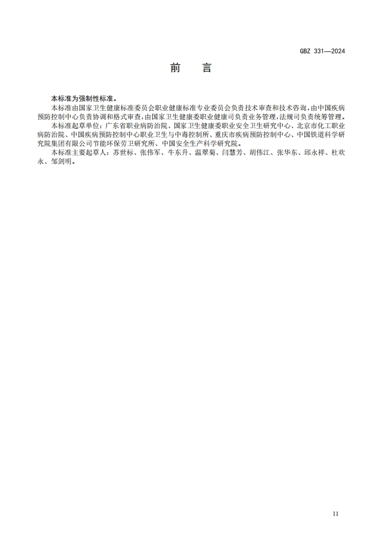职业卫生技术服务工作规范(GBZ331-2024)现行国家强制性标准规范348072@abc49天前发布关注私信2.21MB89页026职业卫生技术服务工作规范(GBZ331-2024)现行国家强制性标准规范此内容为付费资源,请付费后查看¥13¥19黄金会员免费钻石会员免费立即购买您当前未登录!建议登陆后购买,可保存购买订单付费资源 第1页 / 共89页 第2页 / 共89页 第3页 / 共89页 第4页 / 共89页 第5页 / 共89页 第6页 / 共89页 试读已结束,还剩83页,您可下载完整版后进行离线阅读 THE END标准规范 喜欢就支持一下吧收藏
