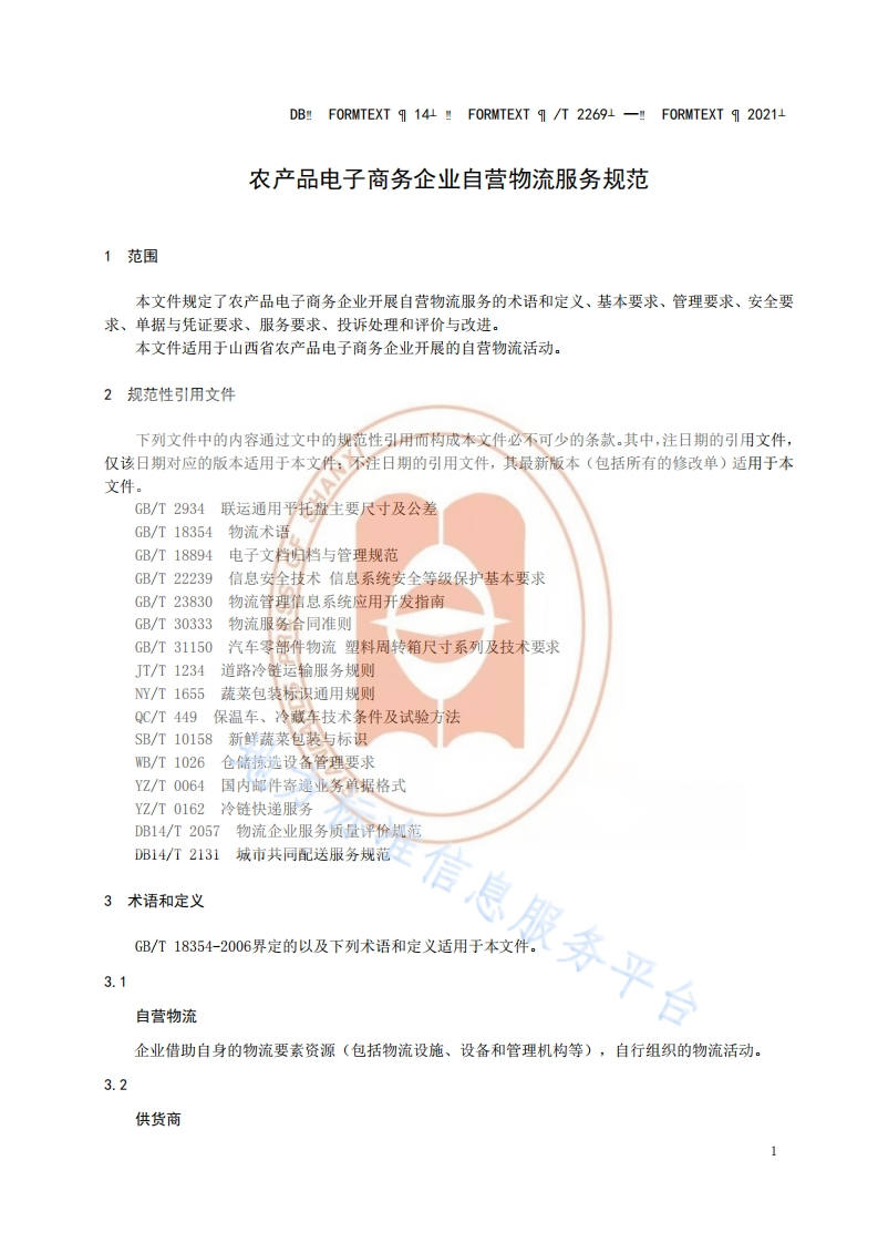 DB14_T2269-2021农产品电子商务企业自营物流服务规范348072@abc1个月前发布关注私信0.50MB10页040DB14_T2269-2021农产品电子商务企业自营物流服务规范此内容为付费资源,请付费后查看¥13¥19黄金会员免费钻石会员免费立即购买您当前未登录!建议登陆后购买,可保存购买订单付费资源 第1页 / 共10页 第2页 / 共10页 第3页 / 共10页 第4页 / 共10页 第5页 / 共10页 第6页 / 共10页 试读已结束,还剩4页,您可下载完整版后进行离线阅读 THE END农学类标准规范 喜欢就支持一下吧收藏