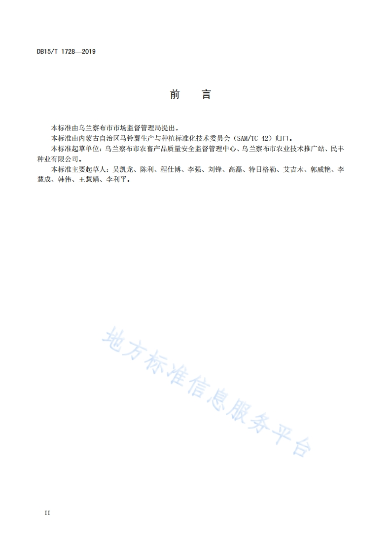 DB15_T1728-2019“乌兰察布马铃薯”质量追溯技术规程348072@abc1个月前发布关注私信0.58MB8页032DB15_T1728-2019“乌兰察布马铃薯”质量追溯技术规程此内容为付费资源,请付费后查看¥13¥19黄金会员免费钻石会员免费立即购买您当前未登录!建议登陆后购买,可保存购买订单付费资源 第1页 / 共8页 第2页 / 共8页 第3页 / 共8页 第4页 / 共8页 第5页 / 共8页 第6页 / 共8页 试读已结束,还剩2页,您可下载完整版后进行离线阅读 THE END农学类标准规范 喜欢就支持一下吧收藏