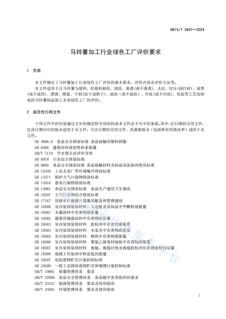 DB15_T3647-2024马铃薯加工行业绿色工厂评价标准要求348072@abc1个月前发布关注私信0.99MB17页041DB15_T3647-2024马铃薯加工行业绿色工厂评价标准要求此内容为付费资源,请付费后查看¥13¥19黄金会员免费钻石会员免费立即购买您当前未登录!建议登陆后购买,可保存购买订单付费资源 第1页 / 共17页 第2页 / 共17页 第3页 / 共17页 第4页 / 共17页 第5页 / 共17页 第6页 / 共17页 试读已结束,还剩11页,您可下载完整版后进行离线阅读 THE END农学类标准规范 喜欢就支持一下吧收藏