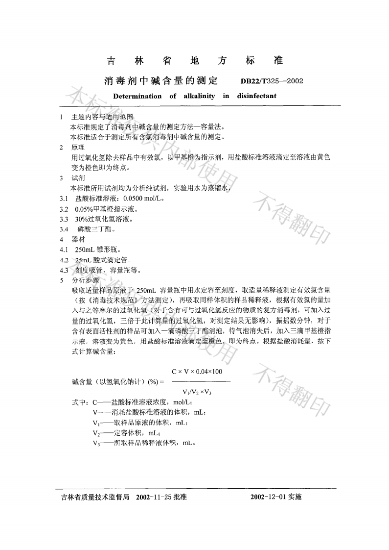 DB22_T325-2002消毒剂中碱含量的标准测定348072@abc1个月前发布关注私信0.12MB3页041DB22_T325-2002消毒剂中碱含量的标准测定此内容为付费资源,请付费后查看¥13¥19黄金会员免费钻石会员免费立即购买您当前未登录!建议登陆后购买,可保存购买订单付费资源 第1页 / 共3页 第2页 / 共3页 第3页 / 共3页 已完成全部阅读,共3页 THE END农学类标准规范 喜欢就支持一下吧收藏