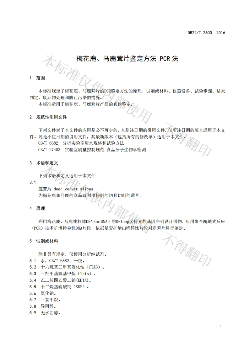 DB22_T2600-2016梅花鹿、马鹿茸片鉴别标准方法PCR法348072@abc1个月前发布关注私信0.52MB9页044DB22_T2600-2016梅花鹿、马鹿茸片鉴别标准方法PCR法此内容为付费资源,请付费后查看¥13¥19黄金会员免费钻石会员免费立即购买您当前未登录!建议登陆后购买,可保存购买订单付费资源 第1页 / 共9页 第2页 / 共9页 第3页 / 共9页 第4页 / 共9页 第5页 / 共9页 第6页 / 共9页 试读已结束,还剩3页,您可下载完整版后进行离线阅读 THE END农学类标准规范 喜欢就支持一下吧收藏