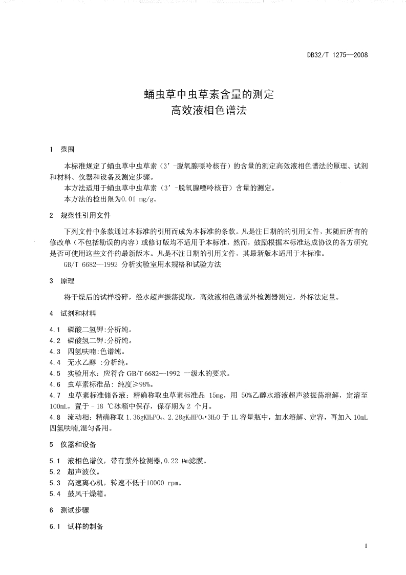 DB32_T1275-2008蛹虫草中虫草素含量的标准测定高效液相色谱法348072@abc1个月前发布关注私信0.27MB5页047DB32_T1275-2008蛹虫草中虫草素含量的标准测定高效液相色谱法此内容为付费资源,请付费后查看¥13¥19黄金会员免费钻石会员免费立即购买您当前未登录!建议登陆后购买,可保存购买订单付费资源 第1页 / 共5页 第2页 / 共5页 第3页 / 共5页 第4页 / 共5页 第5页 / 共5页 已完成全部阅读,共5页 THE END农学类标准规范 喜欢就支持一下吧收藏