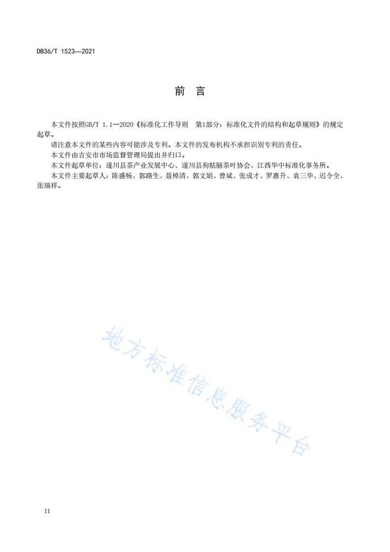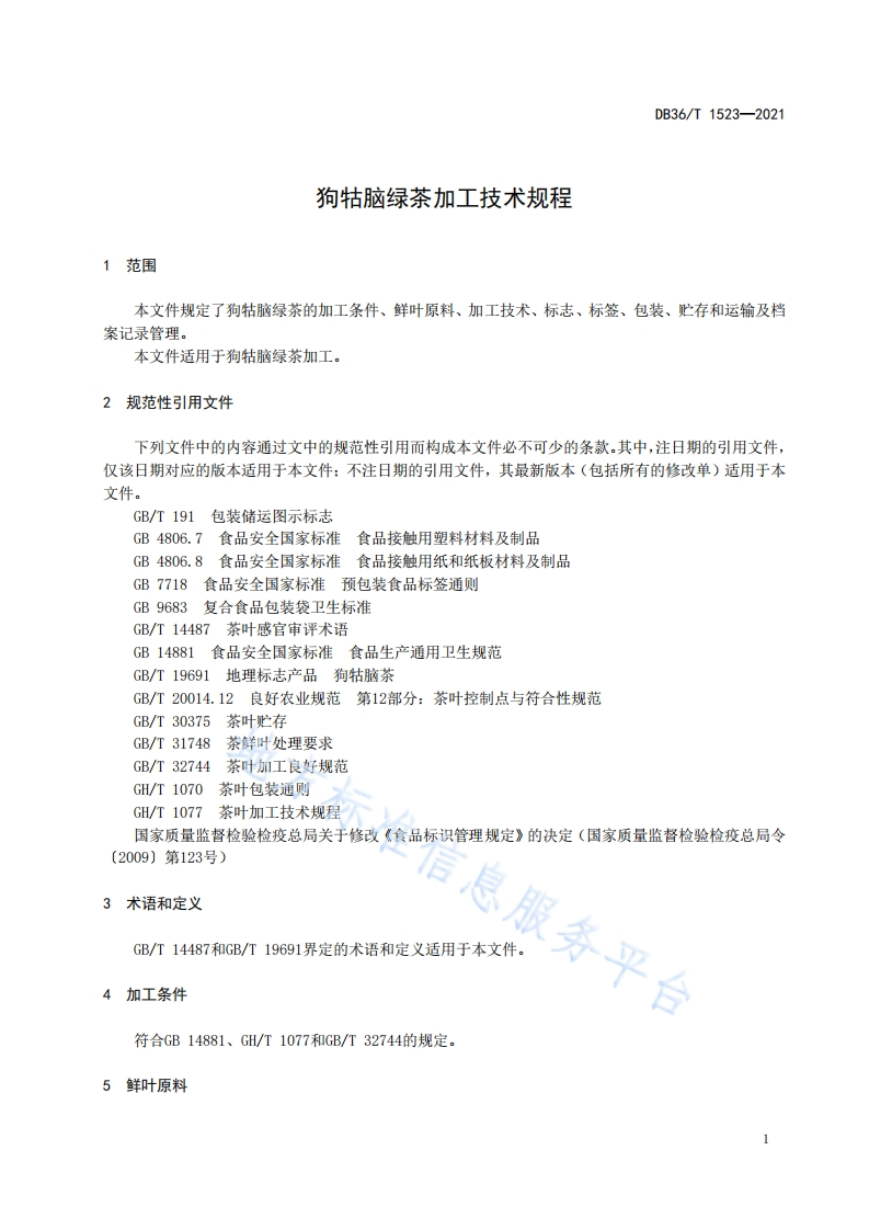 DB36_T1523-2021狗牯脑绿茶加工技术规程348072@abc1个月前发布关注私信0.51MB8页025DB36_T1523-2021狗牯脑绿茶加工技术规程此内容为付费资源,请付费后查看¥13¥19黄金会员免费钻石会员免费立即购买您当前未登录!建议登陆后购买,可保存购买订单付费资源 第1页 / 共8页 第2页 / 共8页 第3页 / 共8页 第4页 / 共8页 第5页 / 共8页 第6页 / 共8页 试读已结束,还剩2页,您可下载完整版后进行离线阅读 THE END农学类标准规范 喜欢就支持一下吧收藏