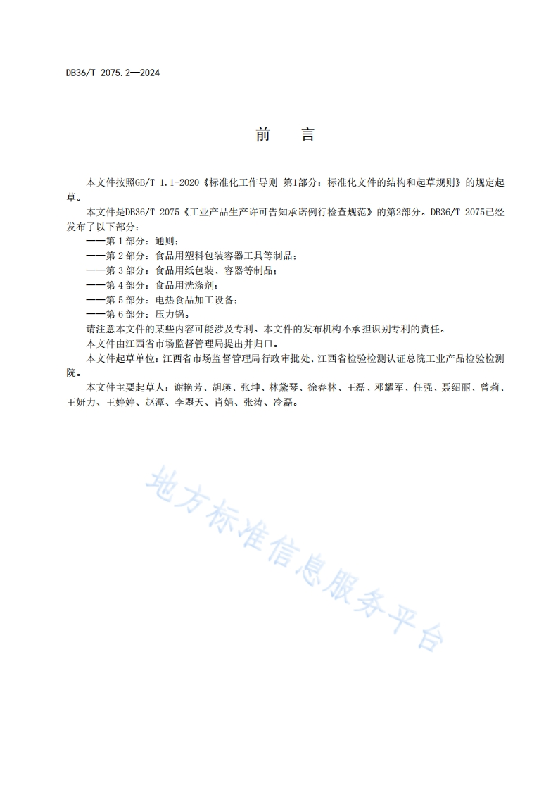 DB36_T2075.2-2024工业产品生产许可告知承诺例行检查规范第2部分:食品用塑料包装容器工具等制品348072@abc1个月前发布关注私信0.69MB10页034DB36_T2075.2-2024工业产品生产许可告知承诺例行检查规范第2部分:食品用塑料包装容器工具等制品此内容为付费资源,请付费后查看¥13¥19黄金会员免费钻石会员免费立即购买您当前未登录!建议登陆后购买,可保存购买订单付费资源 第1页 / 共10页 第2页 / 共10页 第3页 / 共10页 第4页 / 共10页 第5页 / 共10页 第6页 / 共10页 试读已结束,还剩4页,您可下载完整版后进行离线阅读 THE END播放器标准规范 喜欢就支持一下吧收藏