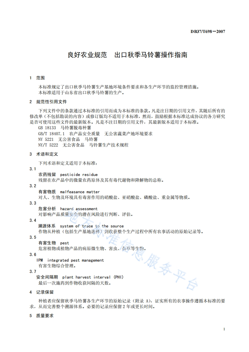 DB37_T698-2007良好农业规范出口秋季马铃薯操作指南348072@abc1个月前发布关注私信0.99MB20页047DB37_T698-2007良好农业规范出口秋季马铃薯操作指南此内容为付费资源,请付费后查看¥13¥19黄金会员免费钻石会员免费立即购买您当前未登录!建议登陆后购买,可保存购买订单付费资源 第1页 / 共20页 第2页 / 共20页 第3页 / 共20页 第4页 / 共20页 第5页 / 共20页 第6页 / 共20页 试读已结束,还剩14页,您可下载完整版后进行离线阅读 THE END农学类标准规范 喜欢就支持一下吧收藏