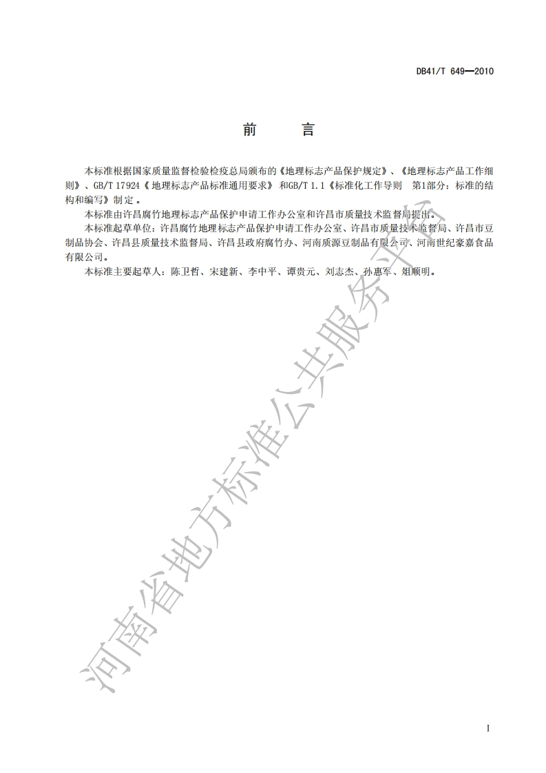 DB41_T649-2010地理标志产品许昌腐竹348072@abc1个月前发布关注私信0.37MB8页030DB41_T649-2010地理标志产品许昌腐竹此内容为付费资源,请付费后查看¥15¥19黄金会员免费钻石会员免费立即购买您当前未登录!建议登陆后购买,可保存购买订单付费资源 第1页 / 共8页 第2页 / 共8页 第3页 / 共8页 第4页 / 共8页 试读已结束,还剩4页,您可下载完整版后进行离线阅读 THE END农学类标准规范餐饮美食 喜欢就支持一下吧收藏