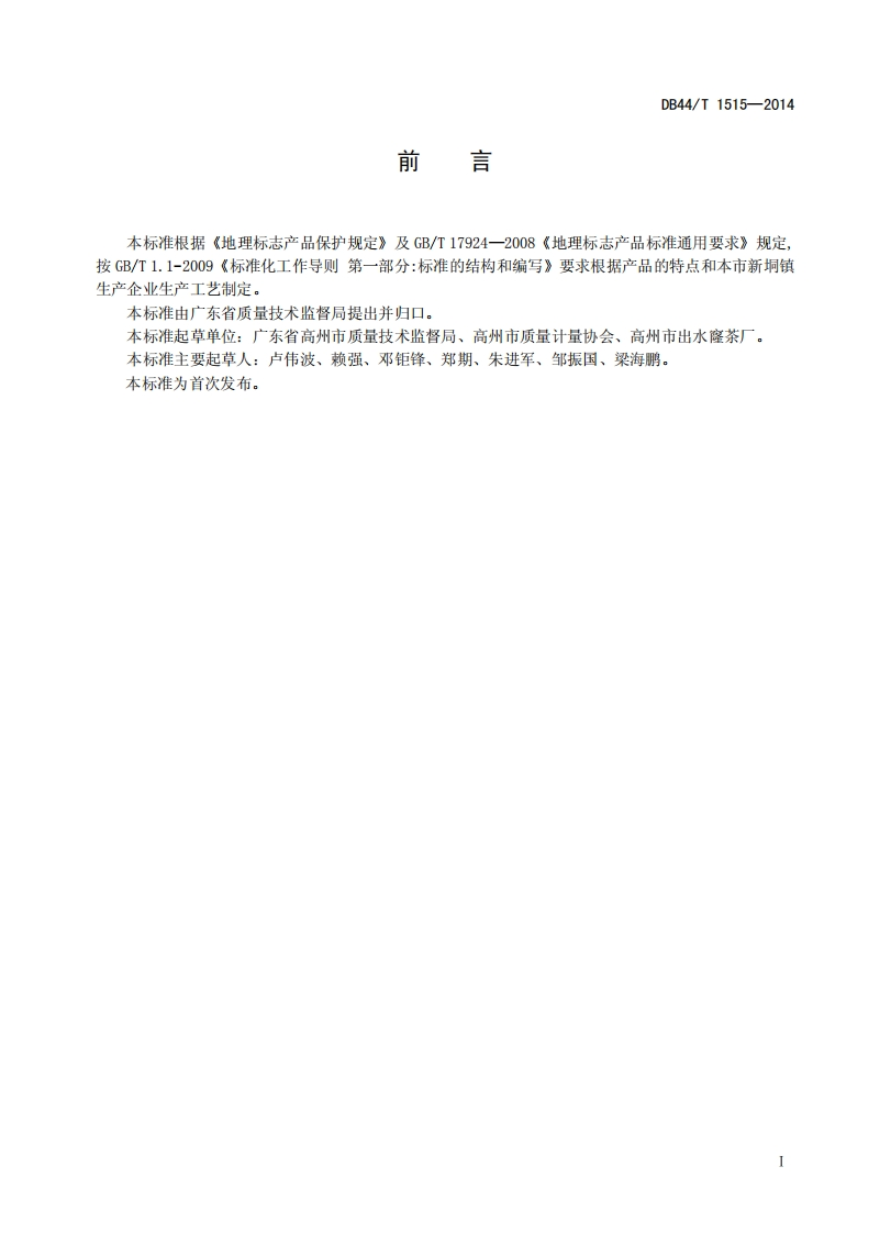 DB44_T1515-2014地理标志产品新垌茶348072@abc1个月前发布关注私信0.29MB9页048DB44_T1515-2014地理标志产品新垌茶此内容为付费资源,请付费后查看¥16¥19黄金会员免费钻石会员免费立即购买您当前未登录!建议登陆后购买,可保存购买订单付费资源 第1页 / 共9页 第2页 / 共9页 第3页 / 共9页 第4页 / 共9页 试读已结束,还剩5页,您可下载完整版后进行离线阅读 THE END农学类标准规范餐饮美食 喜欢就支持一下吧收藏