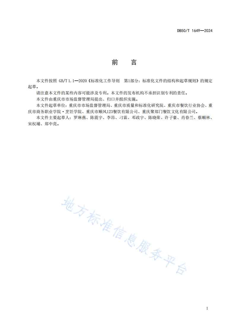 DB50_T1649-2024餐饮业菜品信息描述规范348072@abc1个月前发布关注私信0.78MB11页022DB50_T1649-2024餐饮业菜品信息描述规范此内容为付费资源,请付费后查看¥16¥19黄金会员免费钻石会员免费立即购买您当前未登录!建议登陆后购买,可保存购买订单付费资源 第1页 / 共11页 第2页 / 共11页 第3页 / 共11页 第4页 / 共11页 试读已结束,还剩7页,您可下载完整版后进行离线阅读 THE END农学类标准规范餐饮美食 喜欢就支持一下吧收藏