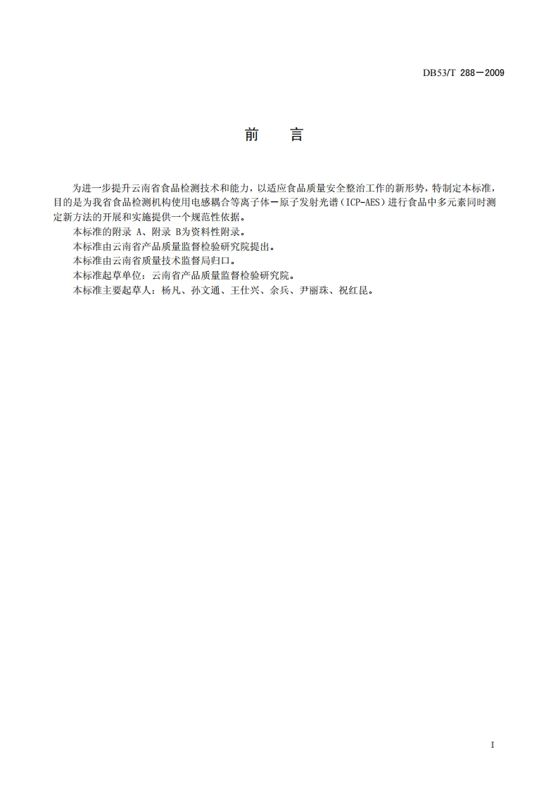 DB53_T288-2009食品中铅、砷、铁、钙、锌、铝、钠、镁、硼、锰、铜、钡、钛、锶、锡、镉、铬、钒含量的标准测定电感耦合等离子体原子发射光谱(ICP-AES)法348072@abc1个月前发布关注私信0.23MB10页028DB53_T288-2009食品中铅、砷、铁、钙、锌、铝、钠、镁、硼、锰、铜、钡、钛、锶、锡、镉、铬、钒含量的标准测定电感耦合等离子体原子发射光谱(ICP-AES)法此内容为付费资源,请付费后查看¥19¥23黄金会员免费钻石会员免费立即购买您当前未登录!建议登陆后购买,可保存购买订单付费资源 第1页 / 共10页 第2页 / 共10页 第3页 / 共10页 第4页 / 共10页 试读已结束,还剩6页,您可下载完整版后进行离线阅读 THE END农学类标准规范餐饮美食 喜欢就支持一下吧收藏